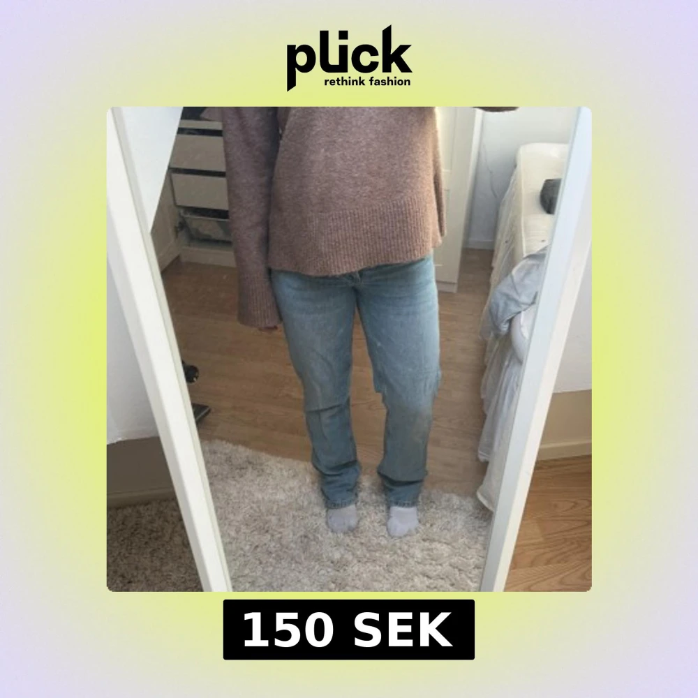 Säljer ett par ljusblå lowwaist jeans från lager 157 i storlek XS. Jeansen har klassisk femficksmodell, raka ben och knäppning med knappar. De är tillverkade i bomull och har en snygg, enkel look som passar till allt. Lite små slitningar där nere, bak, då dem är snäppet för långa för mig (är 158 cm för referens)💕😇🙌🙌