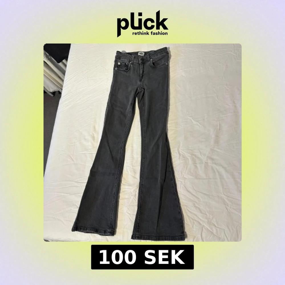 Bootcut jeans från 157 i mörkgrå tvätt, låg midja. Modellen är bootcut med utsvängda ben och är använda ett fåtal gånger .