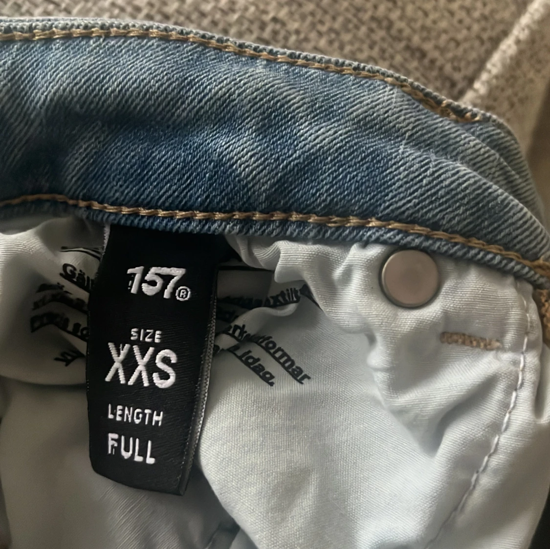Ljusblå bootcut jeans från 157 i storlek XXS. Modellen är low boot med full längd och klassisk femficksdesign. Jeansen har en snygg tvättad look och är tillverkade i mjukt denimtyg som sitter skönt. Perfekta för dig som gillar retrovibbar och stilren passform.