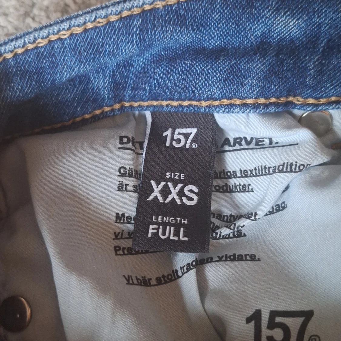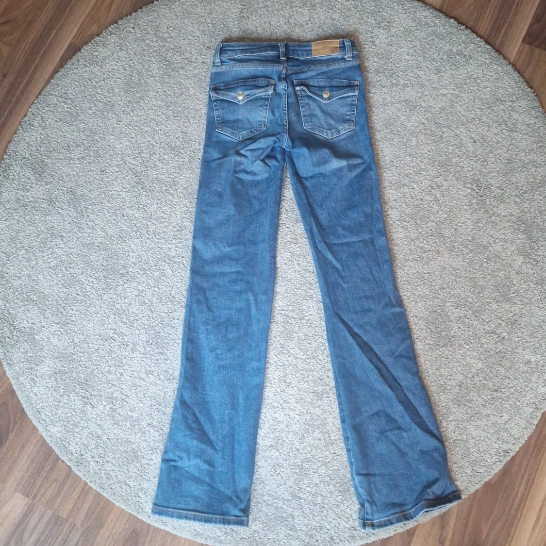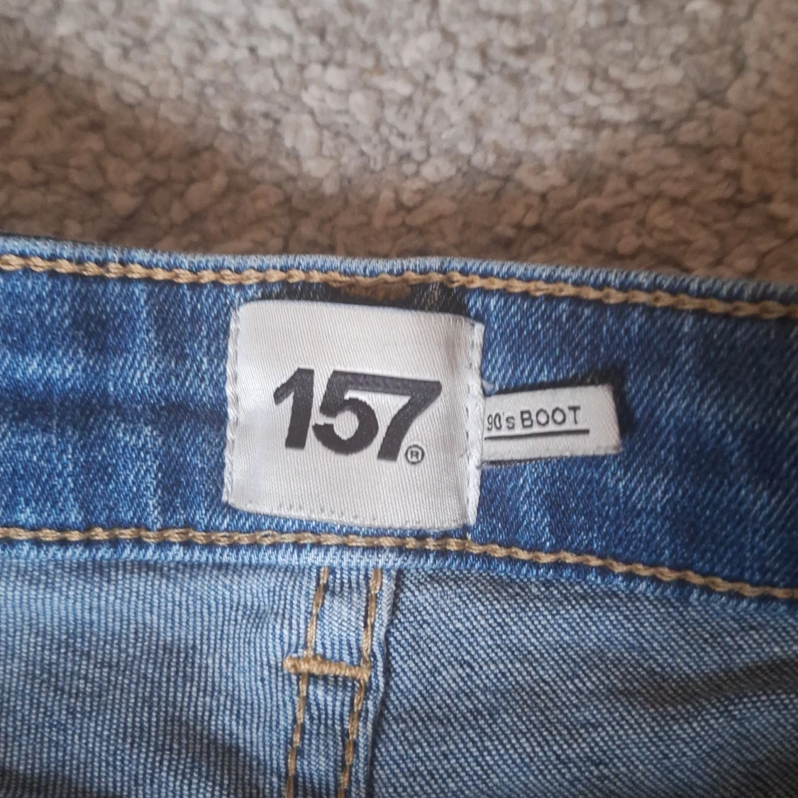 Snygga blå bootcut jeans från 157 i modellen '90s Boot'. Klassisk femficksdesign, full längd och coola detaljer med ficklock bak. Säljer pågrund av att dem är för korta men passar nästan mig som är ca 180cm lång!