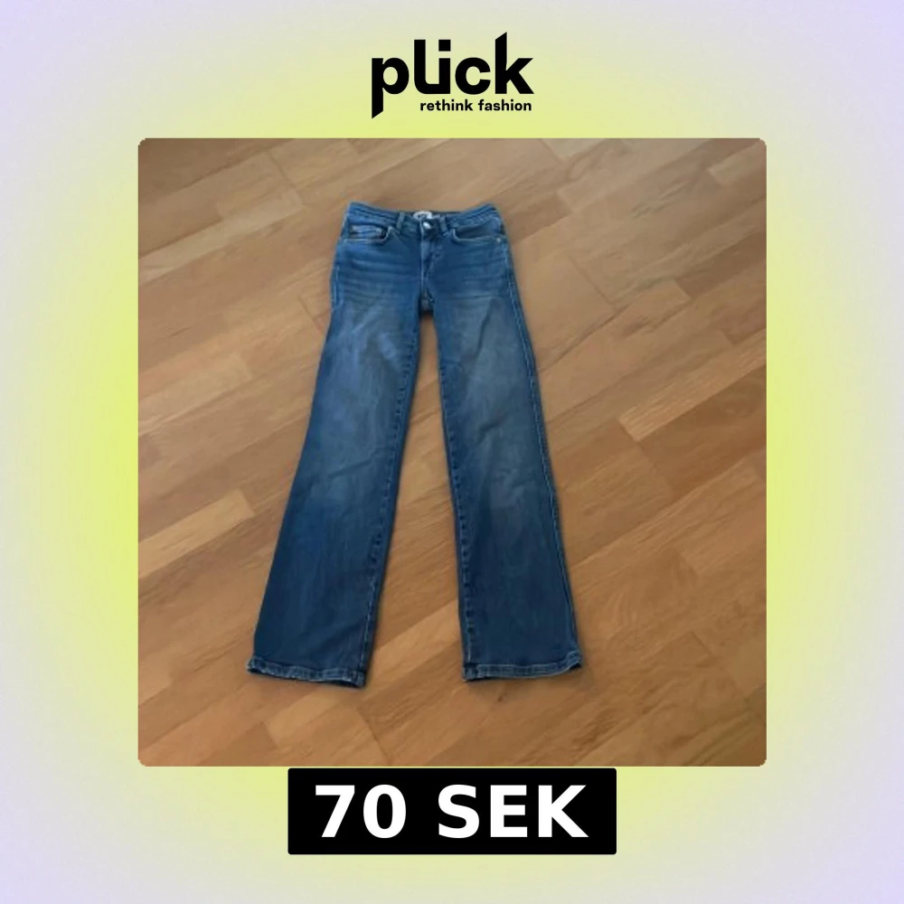 Snygga blå jeans med bootcut och raka ben. Supersnygga fickor med knappar.
