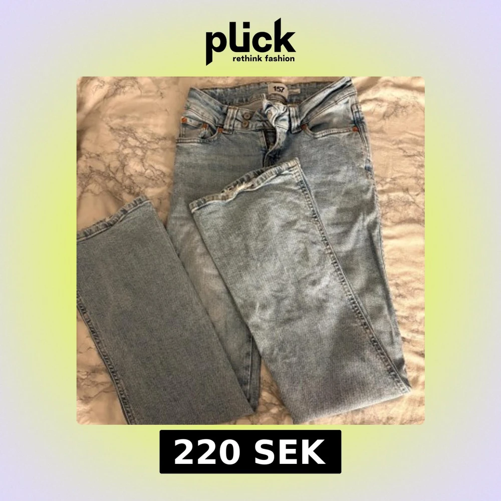Snygga ljusblå jeans från 157 i storlek XXS med full längd. Klassisk femficksmodell med raka ben och broderade detaljer på bakfickorna. Jeansen har hög midja och är tillverkade i mjukt denimtyg. Perfekta för dig som gillar en clean och chill stil.