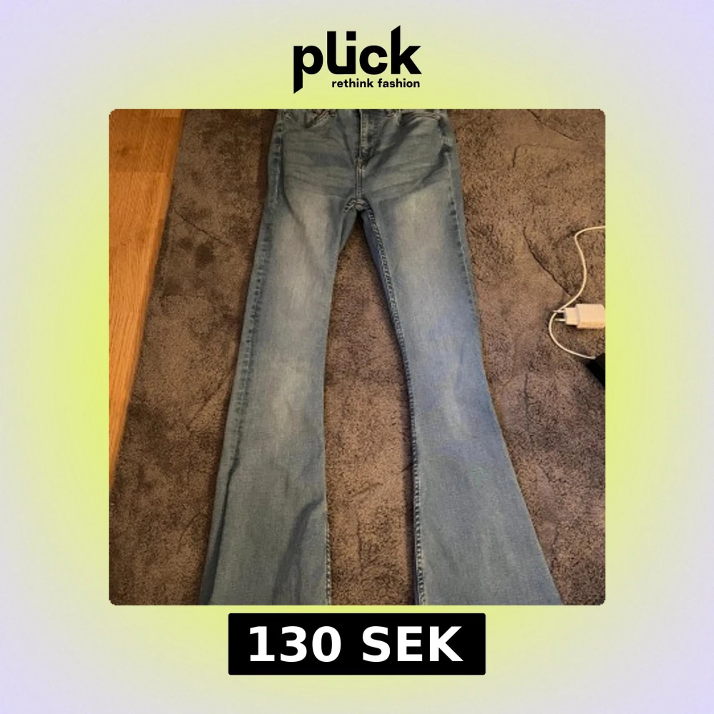 Snygga ljusblå bootcut jeans med klassisk femficksdesign och normal midja. Jeansen har en lätt utsvängd passform nertill och är tillverkade i mjukt denimtyg. Perfekta för dig som gillar retrovibbar och vill ha en avslappnad men trendig look. Kom privat för fler bilder💗 pris kan diskuteras