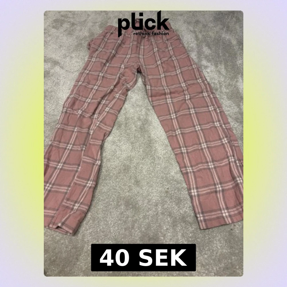 Säljer ett par chill rosa mjukisbyxor från 157 med rutigt mönster i grått och vitt. Har en liten vit prick på högra låret men inget som syns. Byxorna har elastisk midja med snörning och är gjorda i mjukt bomullsmaterial. Perfekta för att hänga hemma eller mysa i soffan.