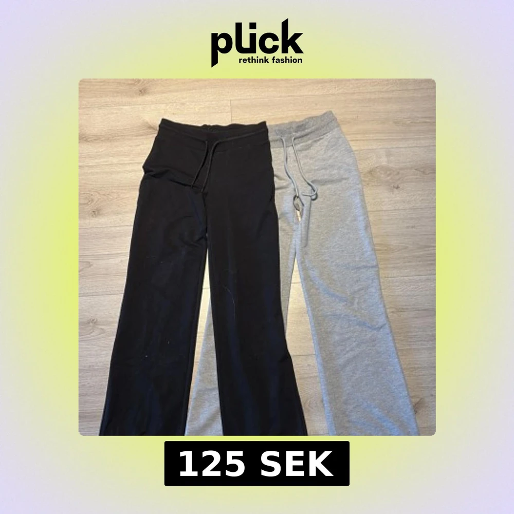 Två par mjukisbyxor från 157 i storlek XS. Ena paret är helsvart och det andra är ljusgrått. Båda är med raka ben. Köparen står för frakten
