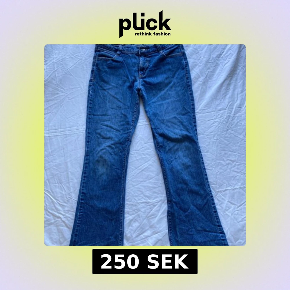 Lågmidajde bootcut jeans storlek M/L bra skick men urtvättade midjemått: 38cm innerbenslängd: 75cm Ytterbenslängd: 97cm y2k Coquette vintage fairy