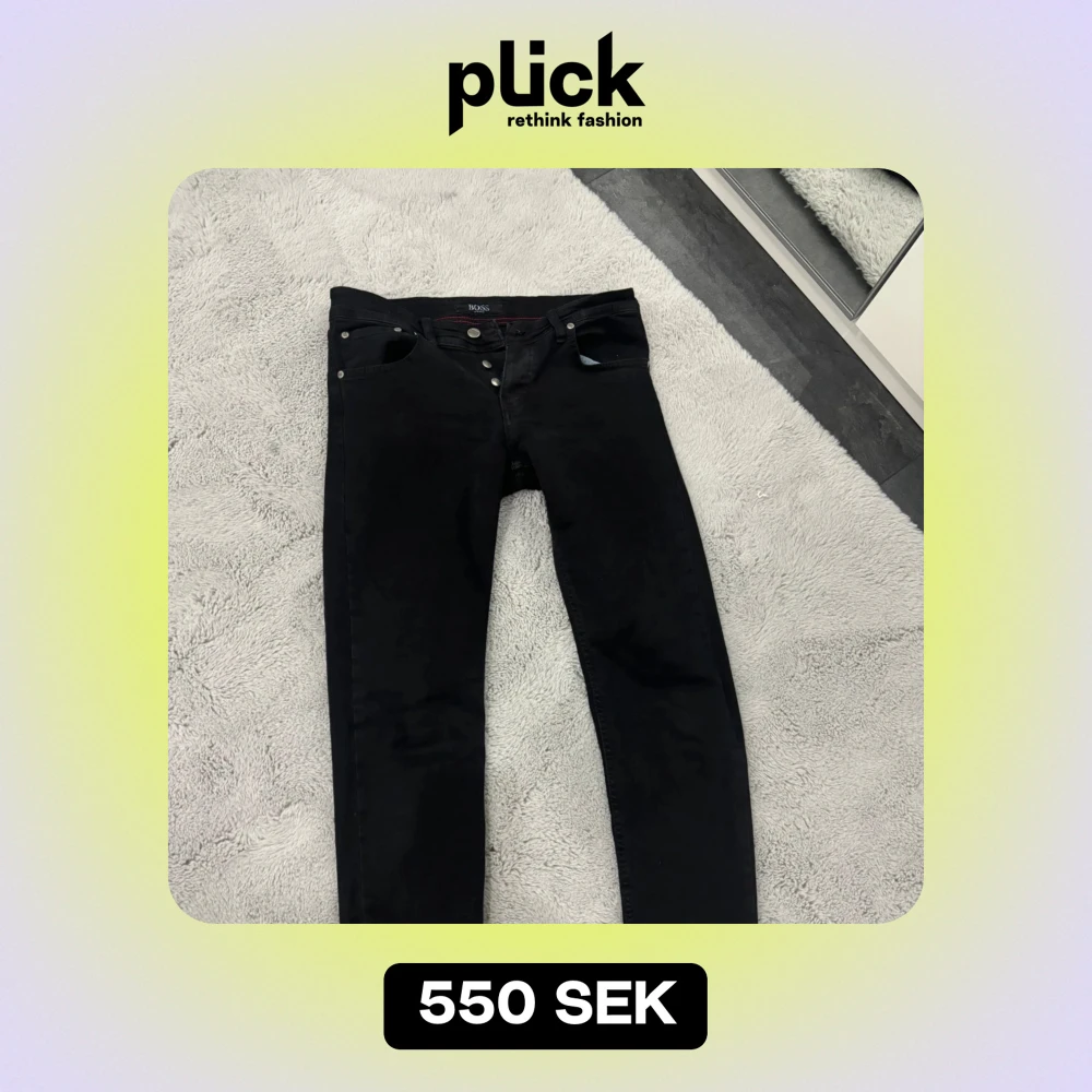 Säljer ett par snygga svarta jeans från Boss i mycket bra skick. De är tighta och har en klassisk femficksdesign med knappar fram. Perfekta för både vardag och fest! Oanvända🖤
