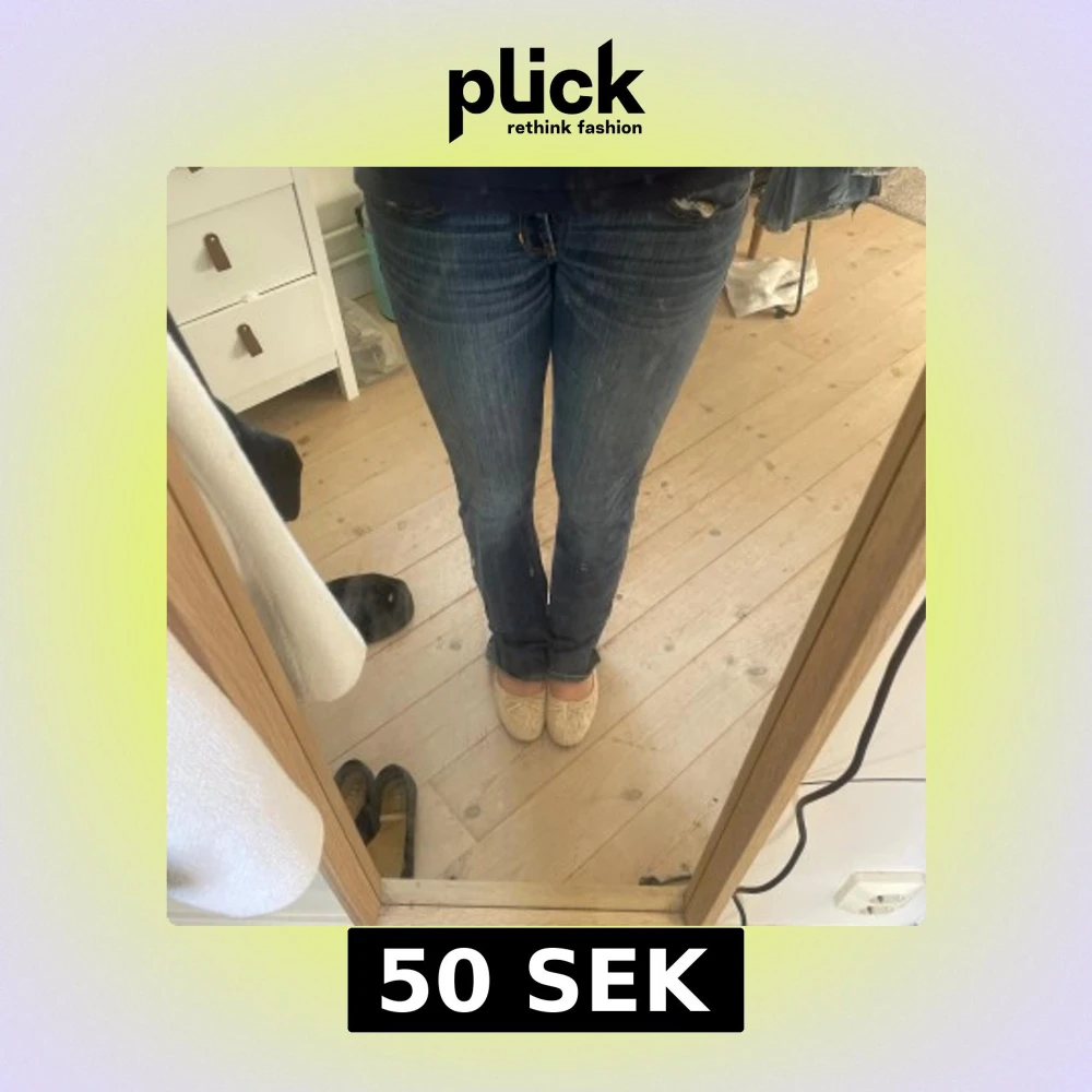 Super snygga lågmidjade jeans som tyvärr har blivit för små. De är köpta på plick men originellt från hollister. De har slitningar (se bilder) men annars i ett bra skick. 😁🌸💗
