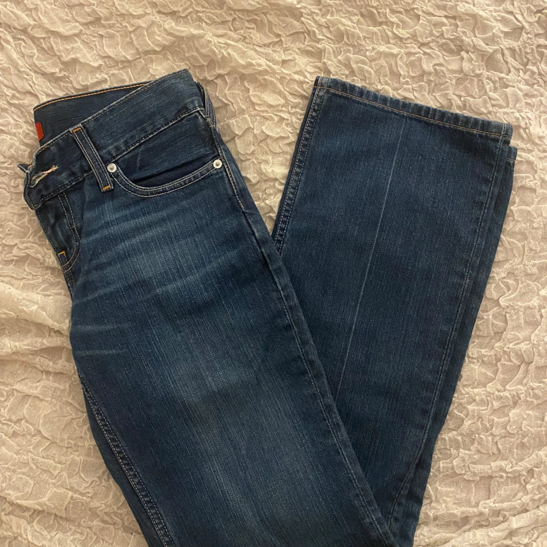 Hej, jag säljer dessa superfina Levis jeans som är i toppkvalitet utan tecken på användning. De är lågmidjade och mellanblå i färgen. Stl 29/32, passar alltså s-m