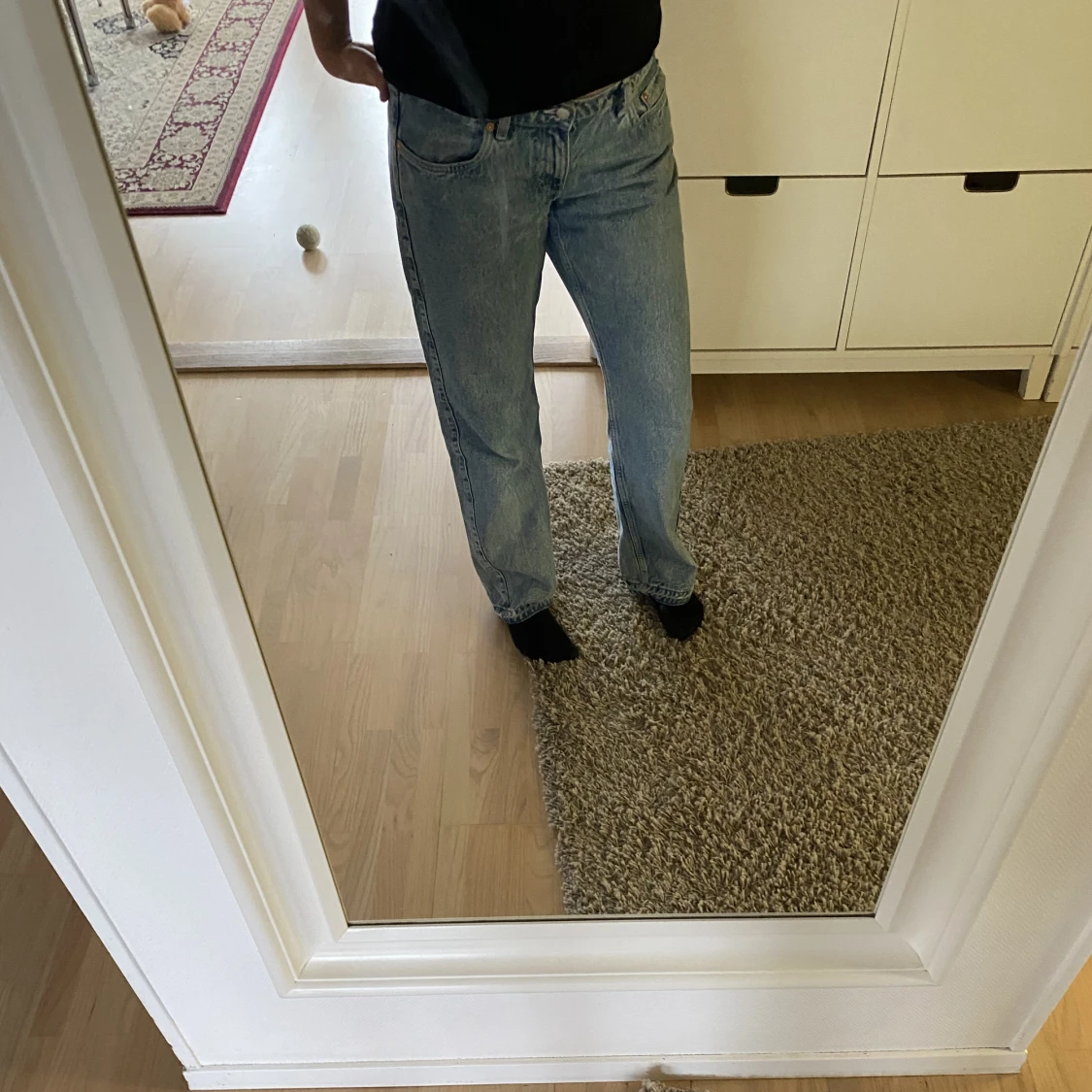 Weekday jeans modell arrow straight blåa säljer på grund av dem sitter lite löst