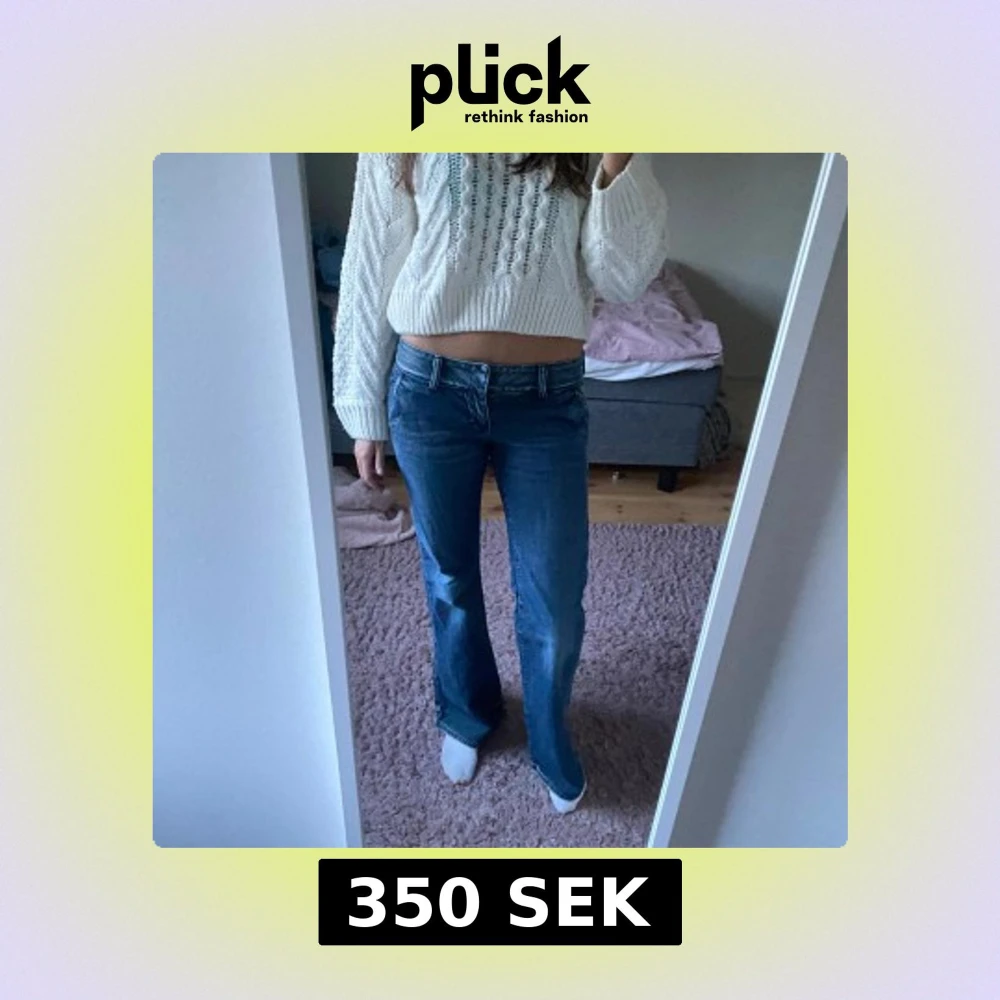 Snygga lågmidjade jeans med en ficka backtill. Midjemått ca 40 cm, ytterbenslängden ca 101cm, bootcut😊