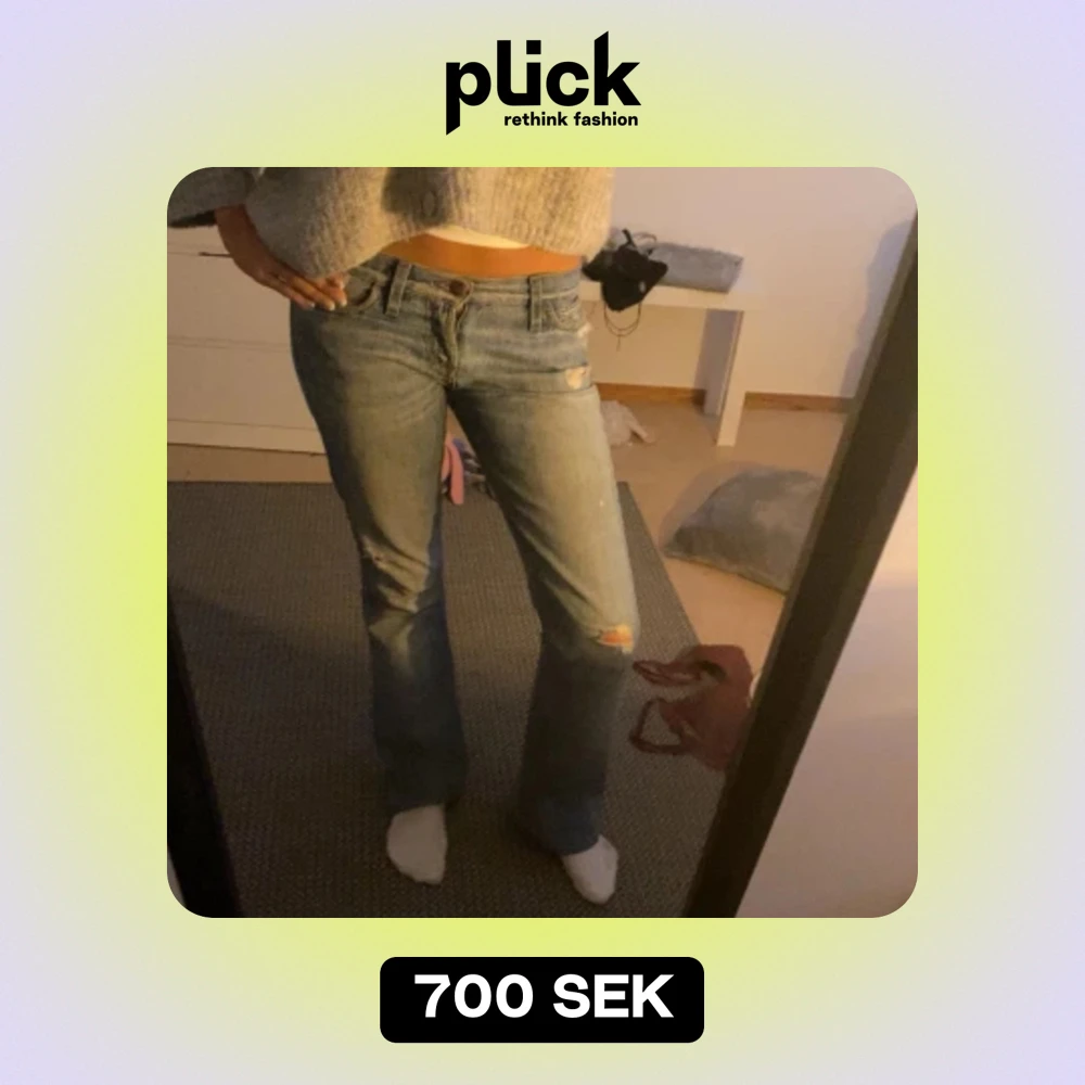 Säljer mina favorit jeans då de inte kommer till användning mer❤️ Finns ett litet hål mellan benen som jag har sytt igen vilket inte syns alls! Passar mig bra som är 166cm och midjemåttet rakt över är 36cm. Pris går att diskutera!❤️