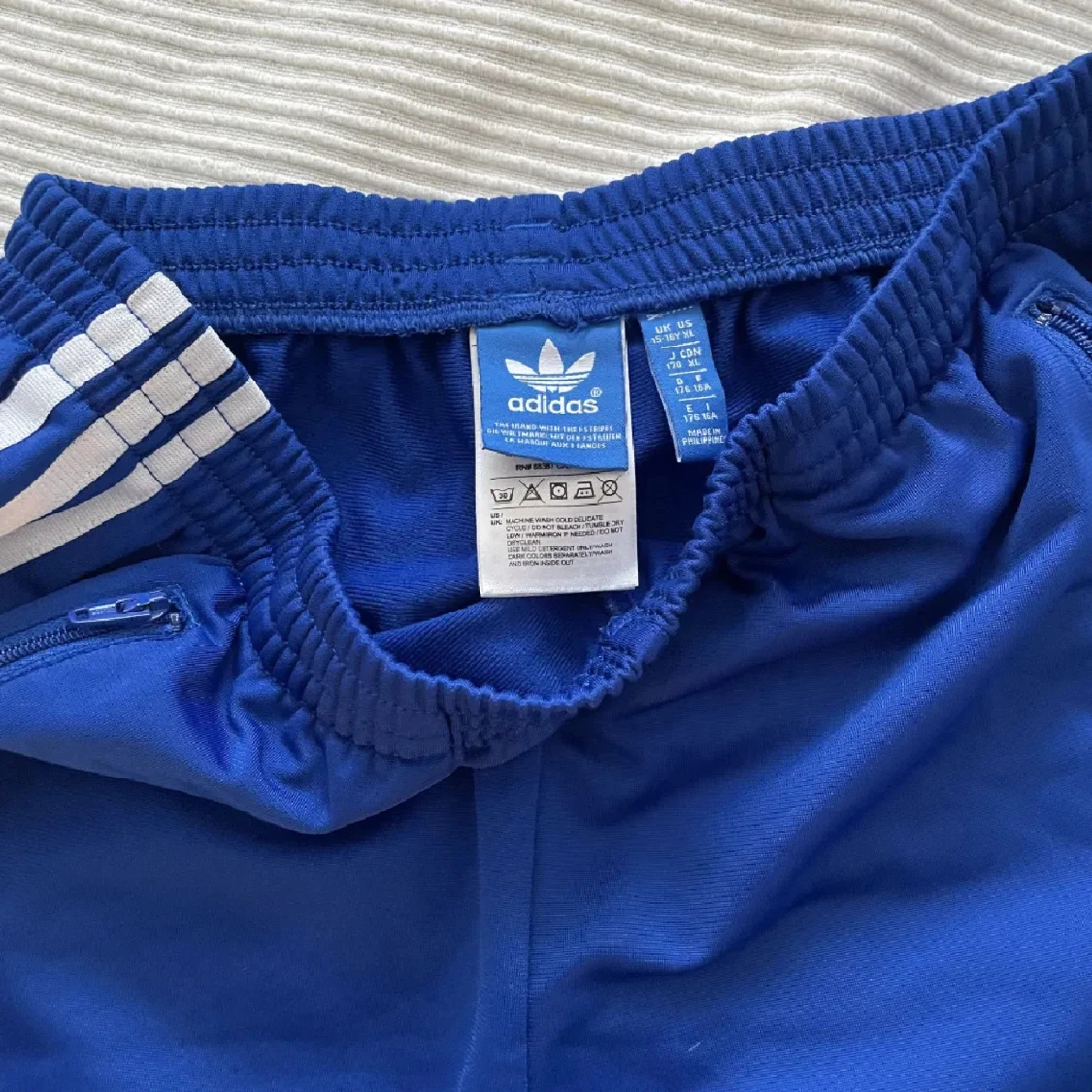 Säljer tyvärr mina jättefina Adidasbyxor då de inte kommer till användning. De är slitna längst ner, men inget som märks när man har på sig dom. De är långa i benen och sitter jättefint och lågmidjat på❤️det går dessutom att vika ner resåren så de sitter ännu lägre