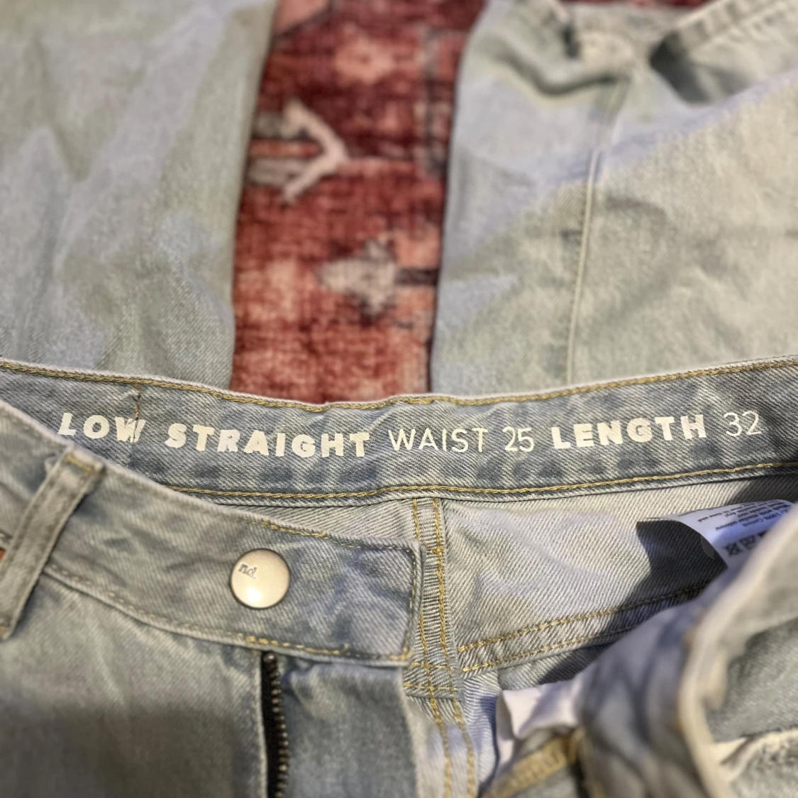 Lågmidjade straight (inte åtsittande) ljusblå jeans från BikBok/Never Denim i storlek 25/32 även kallat W25 L32. Är i mycket gott skick, nästan nytt, då jag inte använt dem mycket.