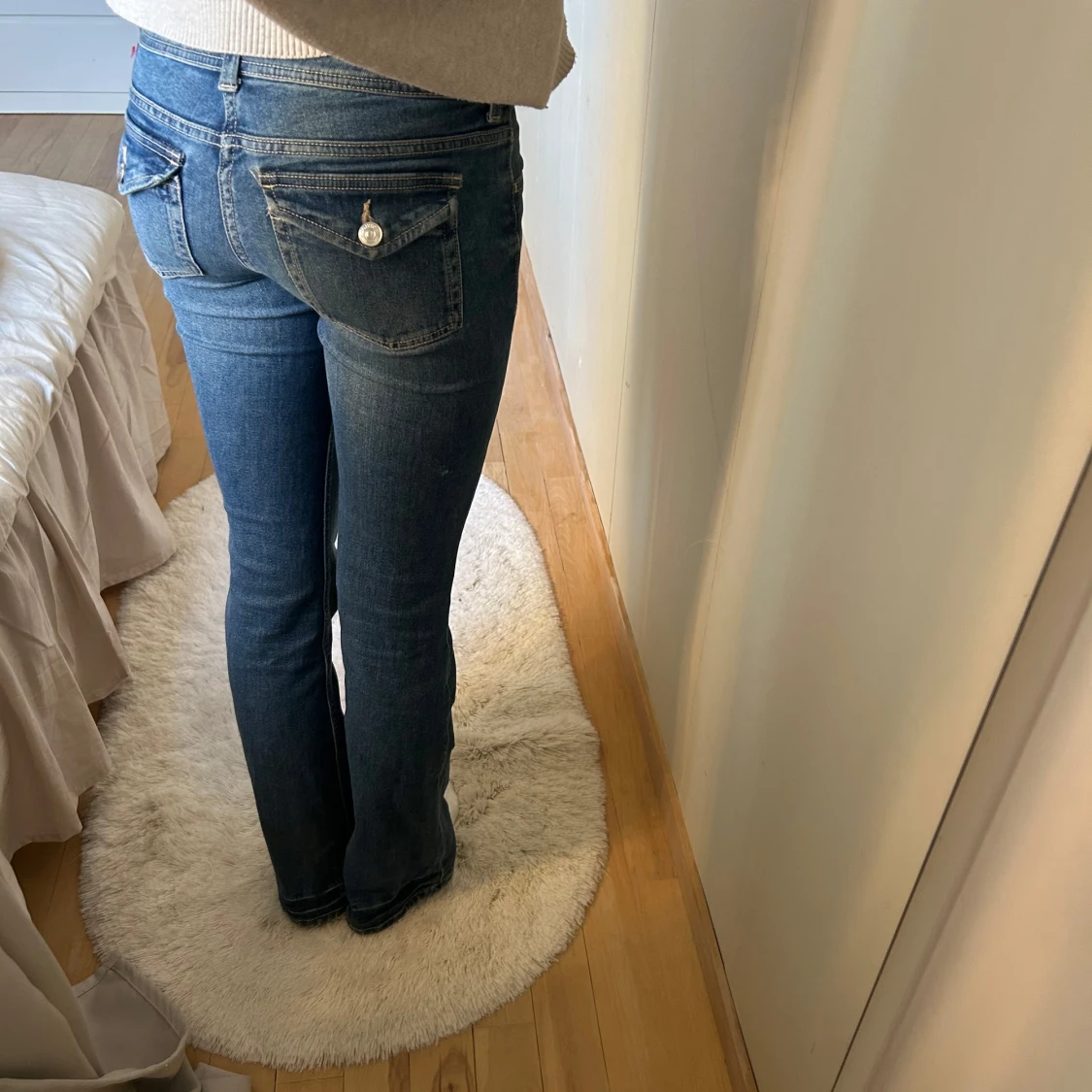 Så snygga lågmidjade jeans från Hm! I storlek 32. Super fint skick. Säljer då dom tyvärr inte kommer till användning💗💗Skriv om du har några frågor!!