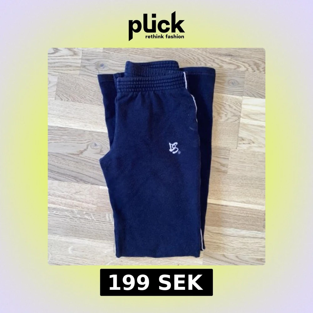 Mörkblå mjukisbyxor från BS med broderad logga på benet. Byxorna har elastisk midja och är tillverkade i mjukt bomull som är riktigt skönt mot huden. Passformen är utsvängd. Perfekta för chill eller träning.