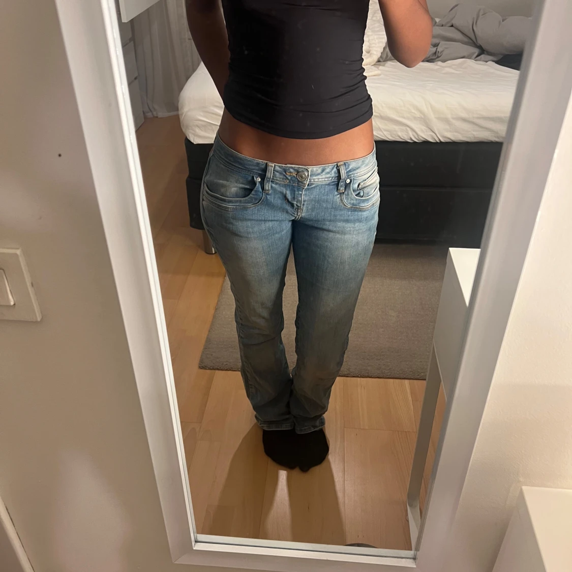 lågmidjade jeans från zalando i storlek 26/32, har dock ett litet hål men inget märkvärdigt