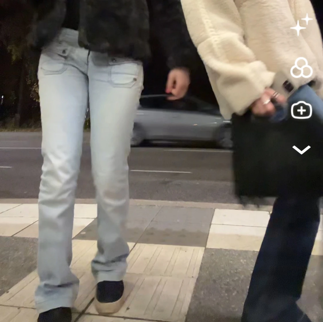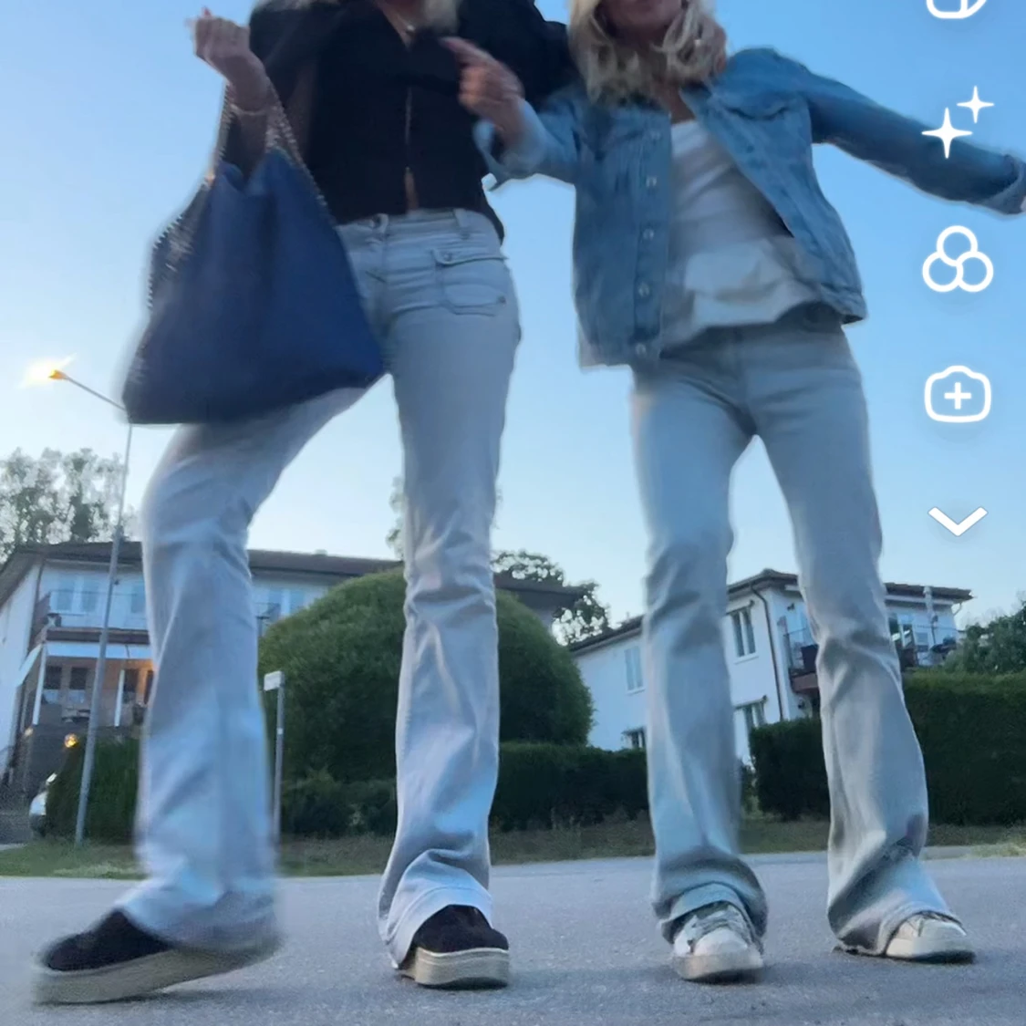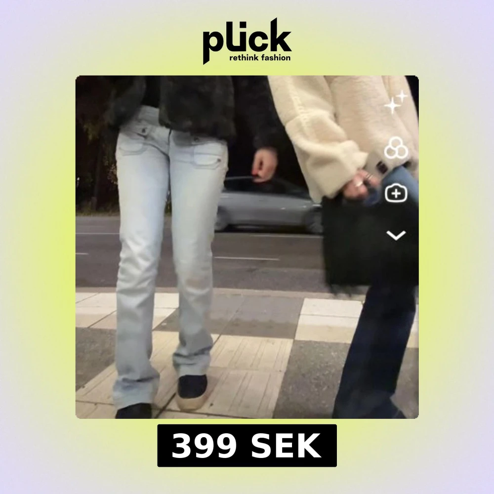 Säljer ett par ljusblå jeans med bootcut-modell och snygga fickdetaljer framtill. Jeansen har normal passform och är tillverkade i klassiskt denimtyg. Perfekta för dig som gillar en retro vibe och vill ha ett par jeans som sticker ut lite extra.