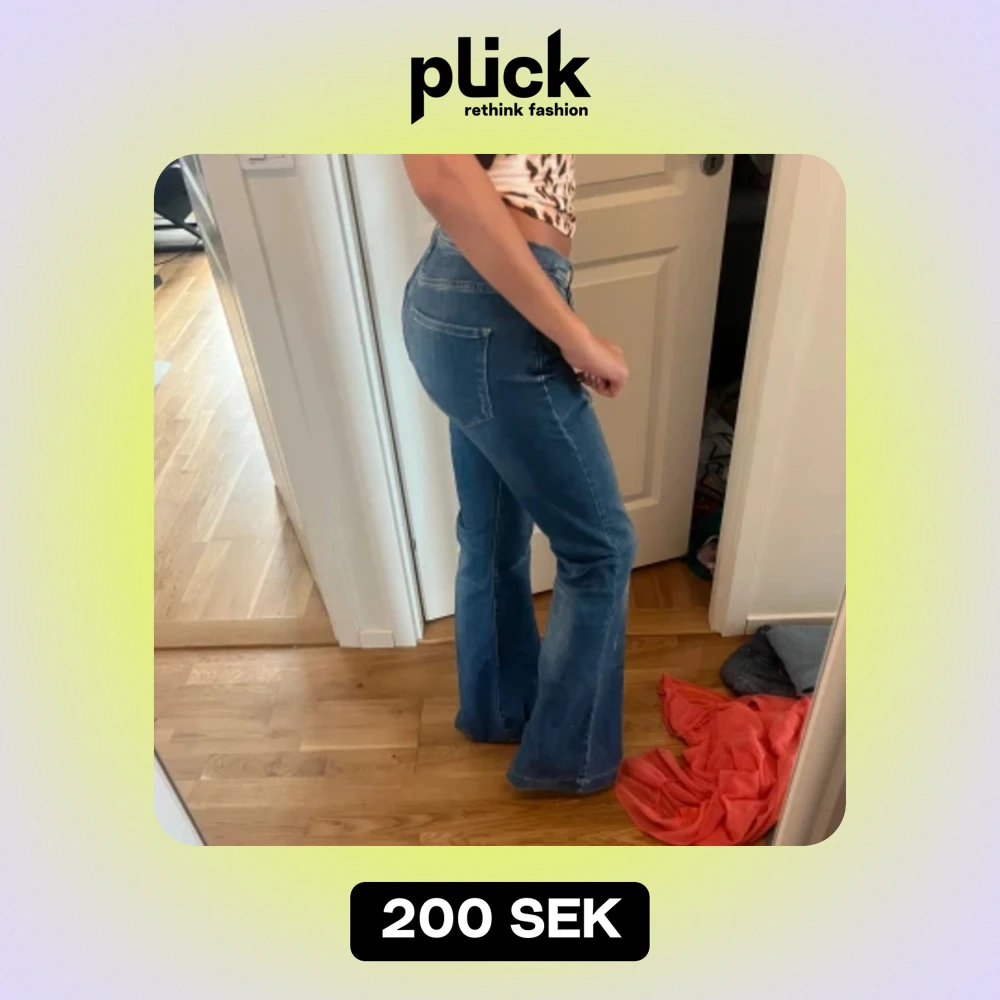 fina lågmidjade/midwaist bootcut, w30 men passar mig som brukar ha w 27, väldigt stretchiga! jag är 173 och de är för långa för mig
