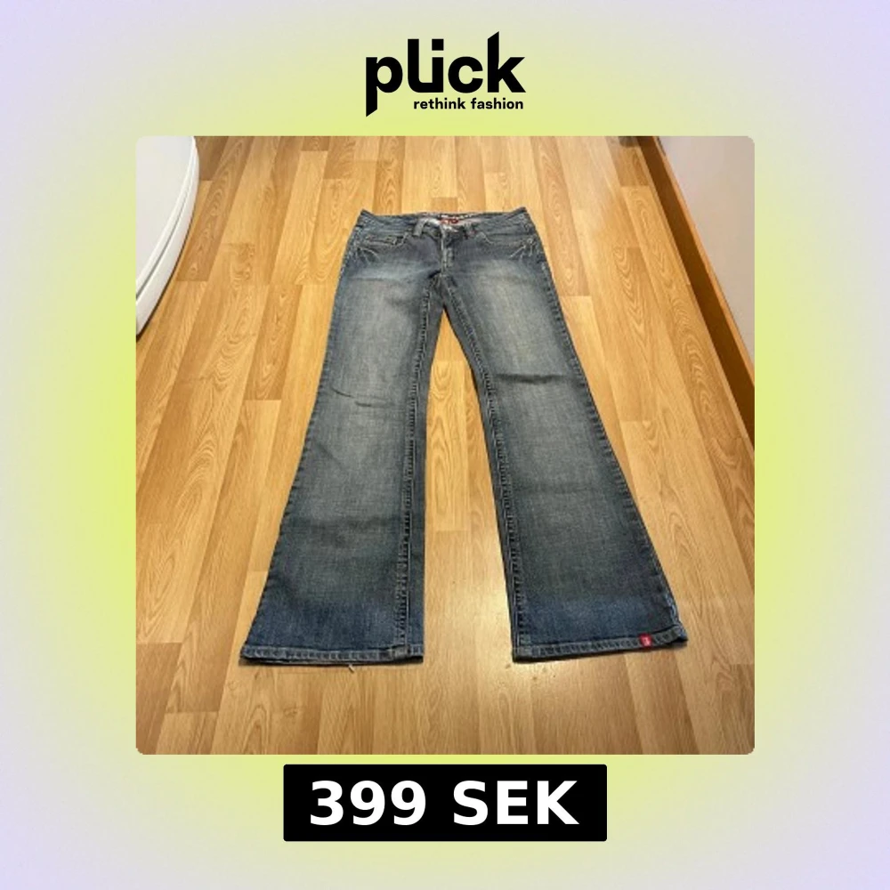 (16) Lågmidjade bootcut jeans med detaljer på fickorna, midjemått rakt över: 36 cm, innerbenslängd: 82 cm 💞