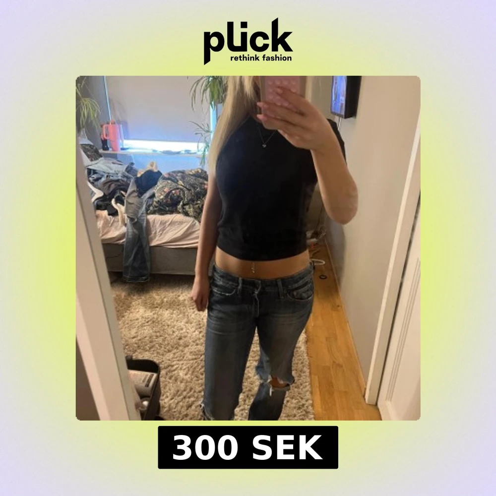 Säljer dom här snygga lågmidjade bootcut jeansen eftersom att dom inte kommer till användning längre. har klippt av dom läbgst ner, pris kan diskuteras.