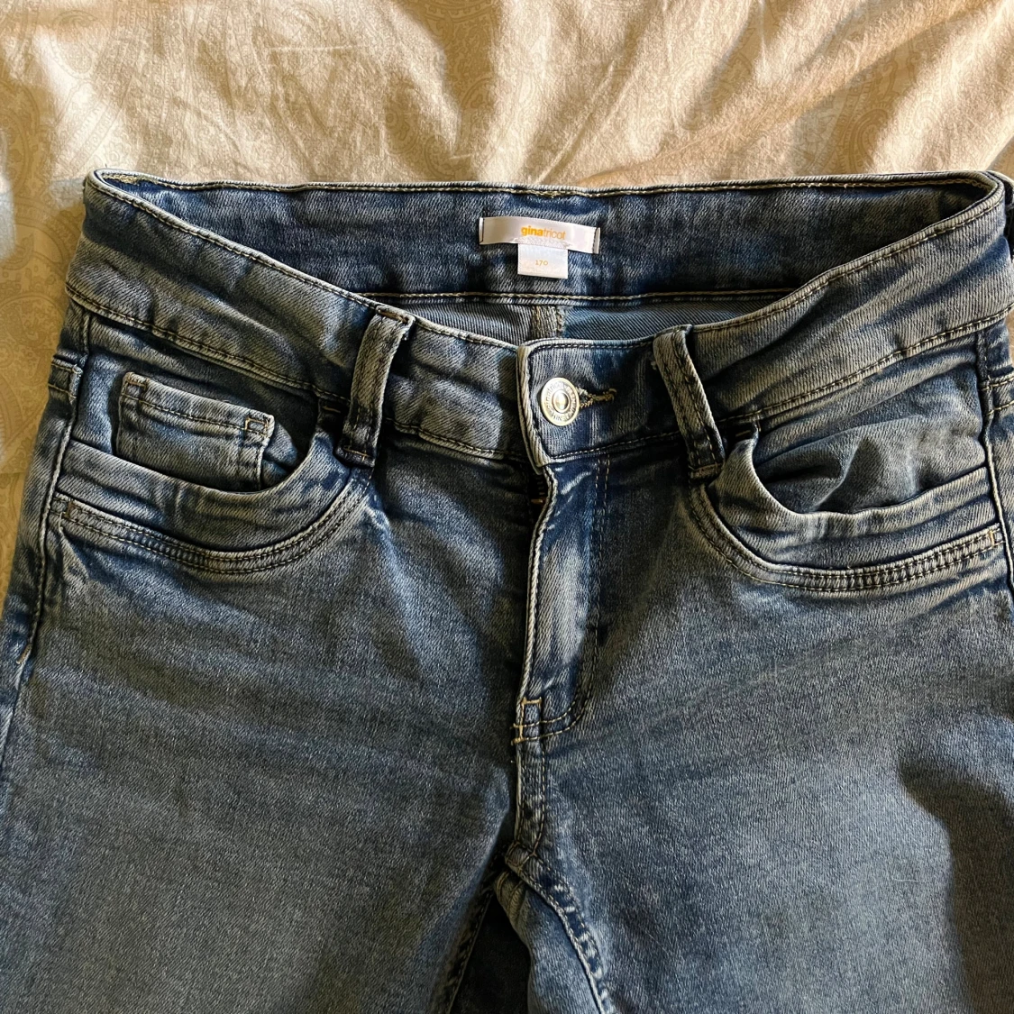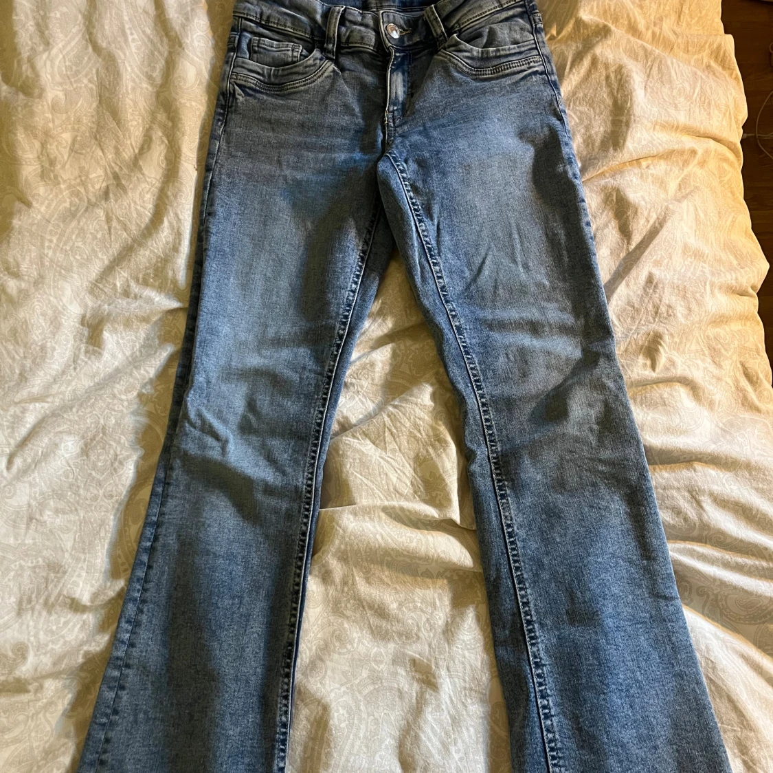 Säljer dessa jättefina blå Lågmidjade bootcut jeansen från Ginayoung, storlek 170 (passar Xs/S) köpta i somras så knappt använda! Nypris 359kr 💞