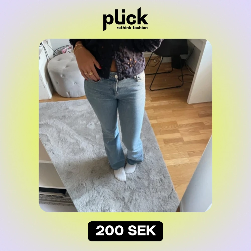 Super fina lågmidjade bootcut jeans från zara, inga defekter💕 Midjemått är 35 cm och innerbenslängden är 80cm