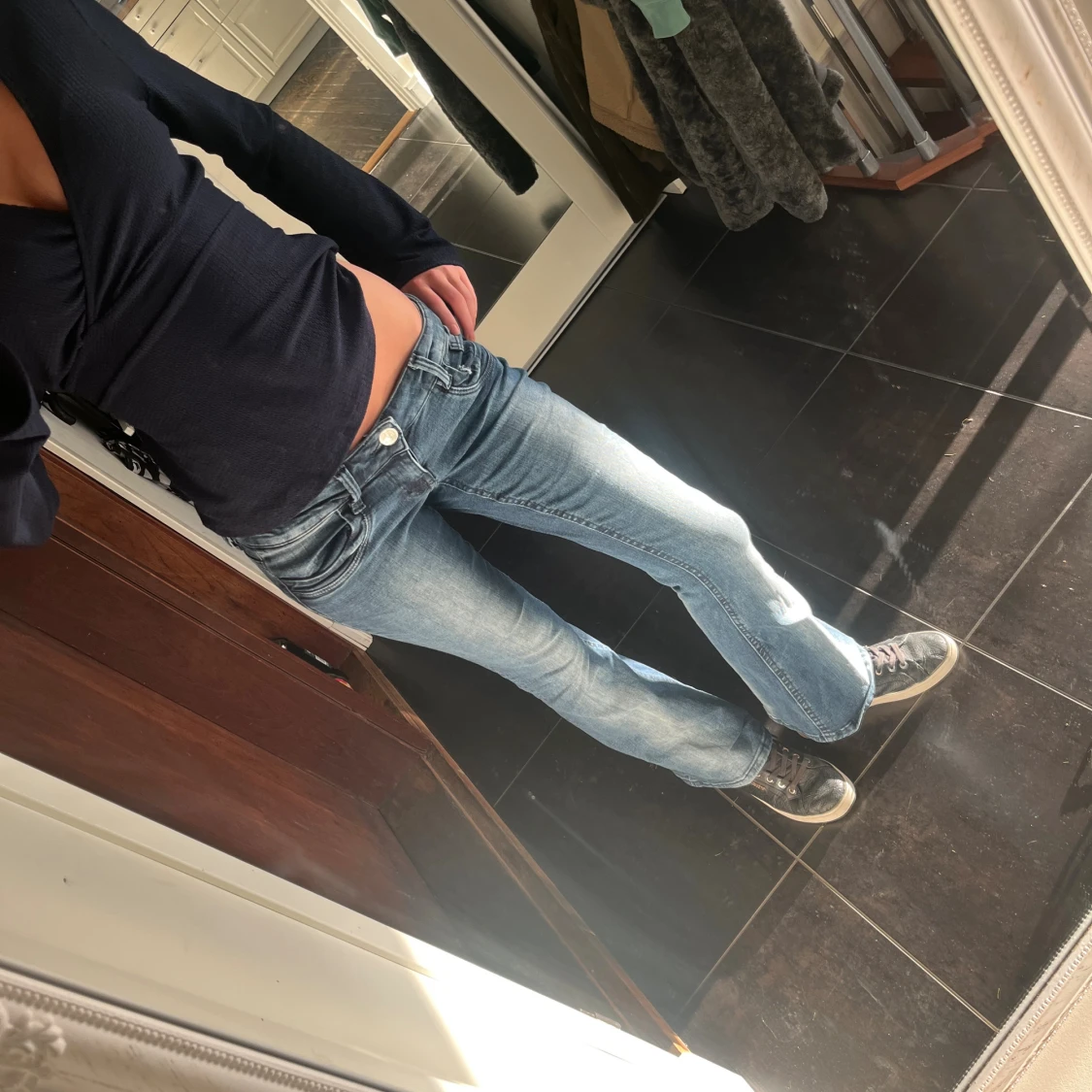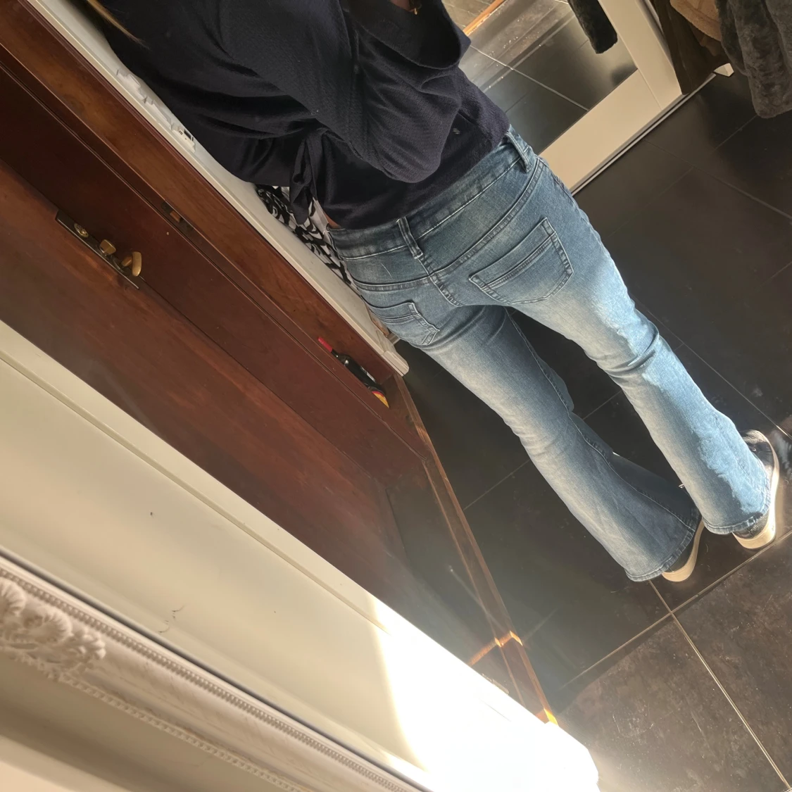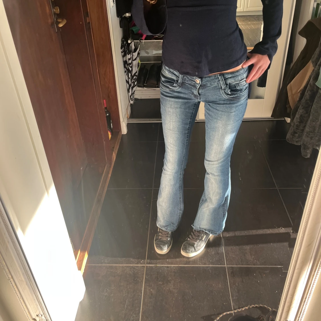 Slutsålda Snygga lågmidjade jeans i ljusblå denim med bootcut-ben. Jeansen har en lätt tvättad look och sitter tajt upptill med utsvängda ben. Perfekta för dig som gillar en retroinspirerad stil. Säljer för att jag behöver spara pengar för tillfället❤️