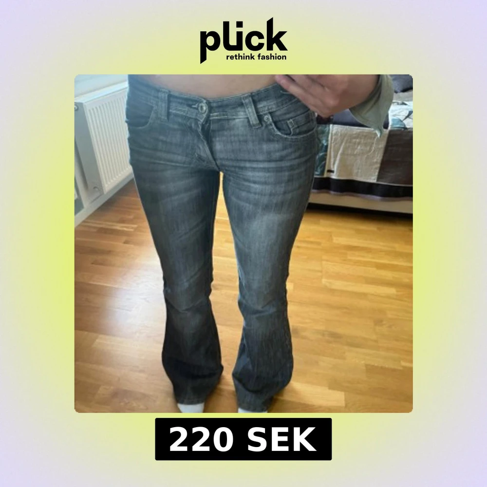 Säljer ett par grå lågmidjade bootcut jeans som jag köpte i Tyskland förra året. Fint skick förutom att de är slitna längst ner vid fötterna. Storlek 28/32