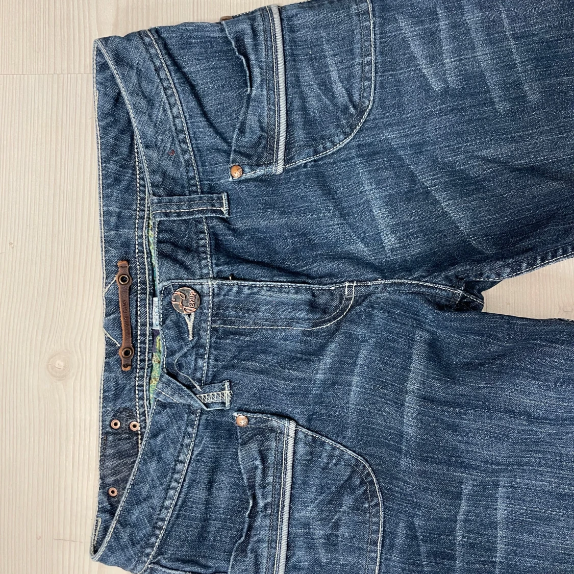Midjemåttet 38. Innerbenslängd 77. Grenmått 22. Hon på bilden är 163💗