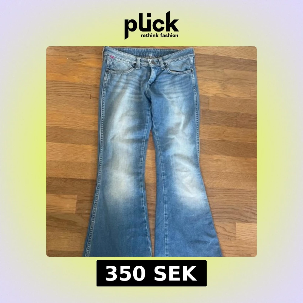 Säljer dessa lågmidjade vintage bootcut jeans då de tyvärr är för små för mig. De är i storlek W27/L30 från märket Wrangler. De är i bra skick. Skriv för mått osv.