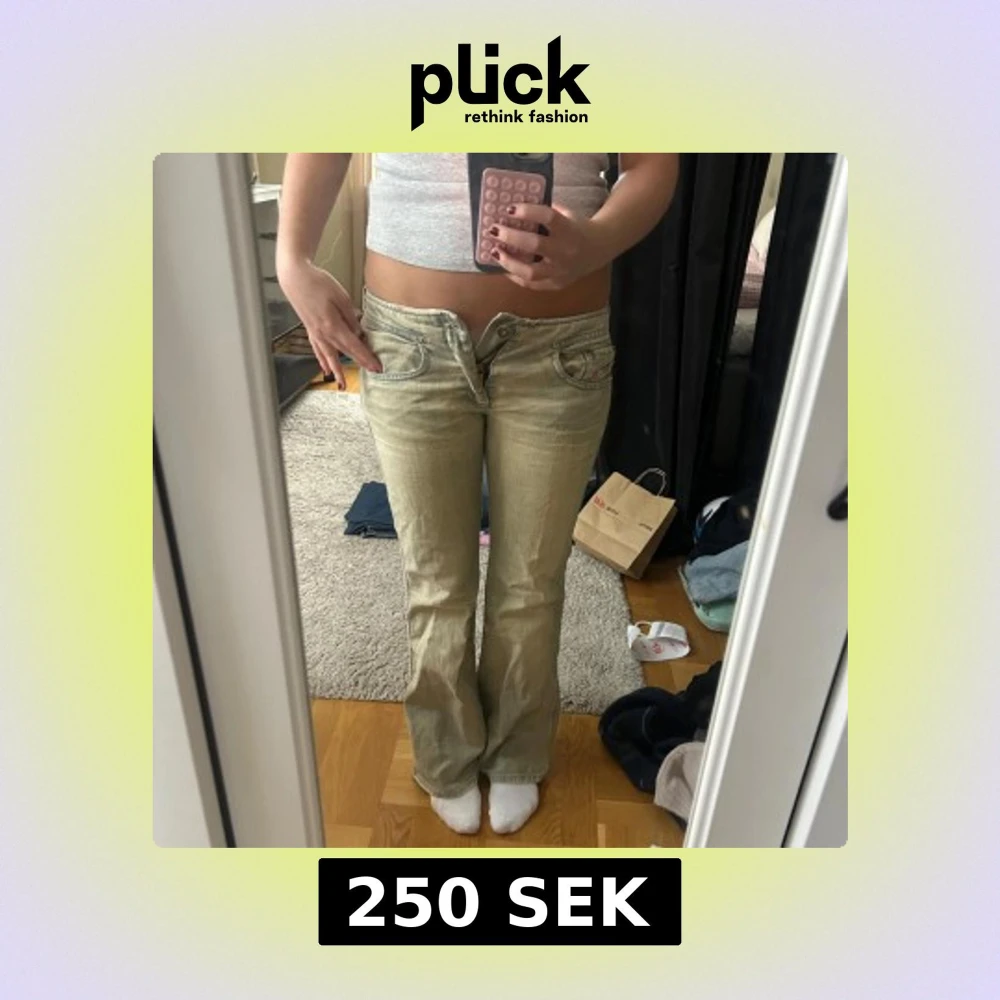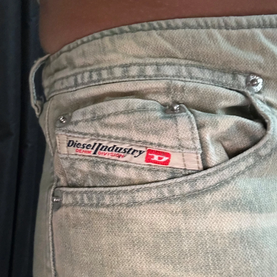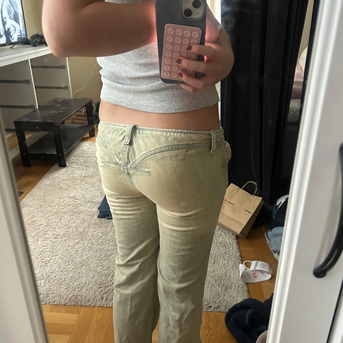 Snygga ljusbeiga/gulaktiga lågmidjade jeans från Diesel med bootcut passform.
