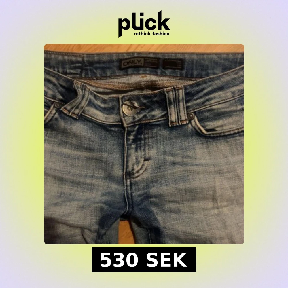 Säljer ett par lågmidjade jeans från Only Jeansen har ett hål på ena knät, jätte coola bakfickor med detaljer. Använda ganska mycket så dom är slitna längst ner men inget man tänker på, de är långa på mig som är 172 så går att klippa och sy om längst ner annars!💗midjemått: 38-39!