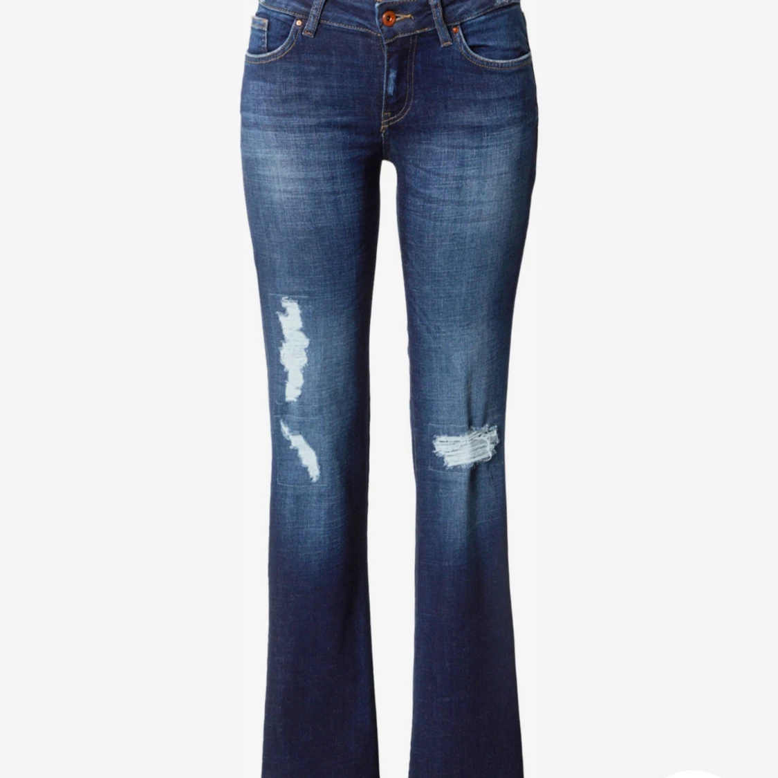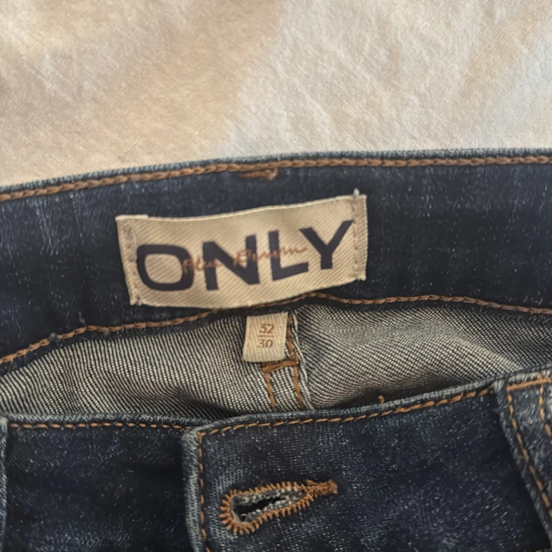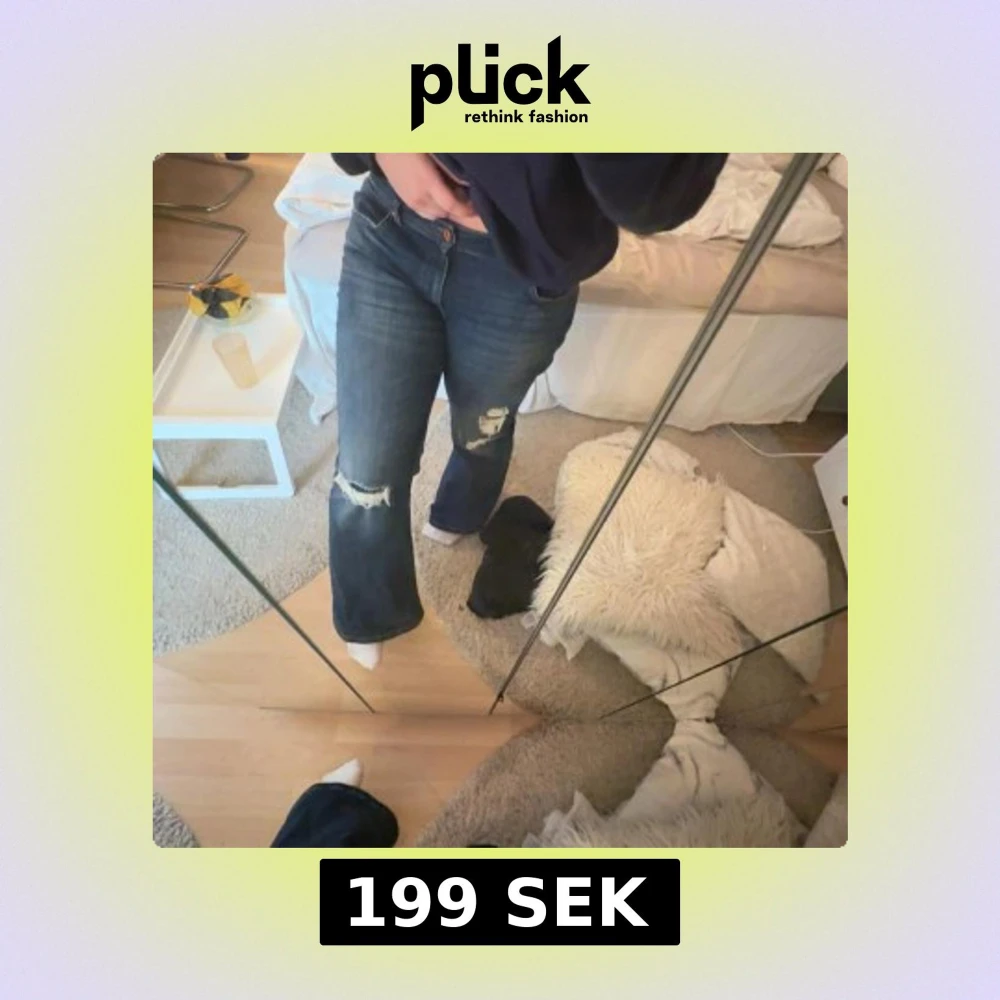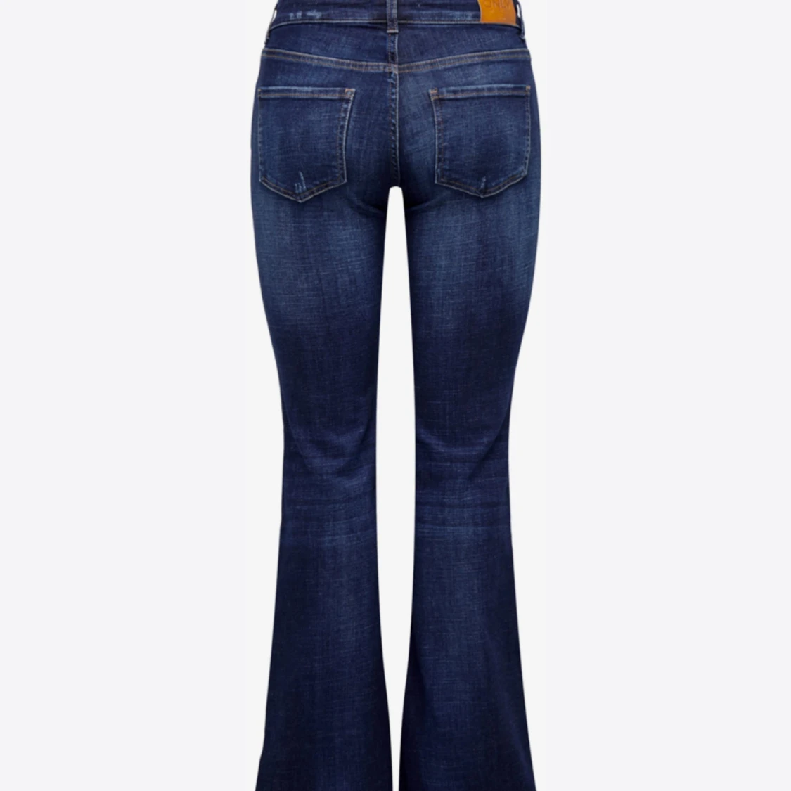 Snygga blå lågmidjade bootcut jeans från ONLY med slitna detaljer på framsidan av benen💗💗