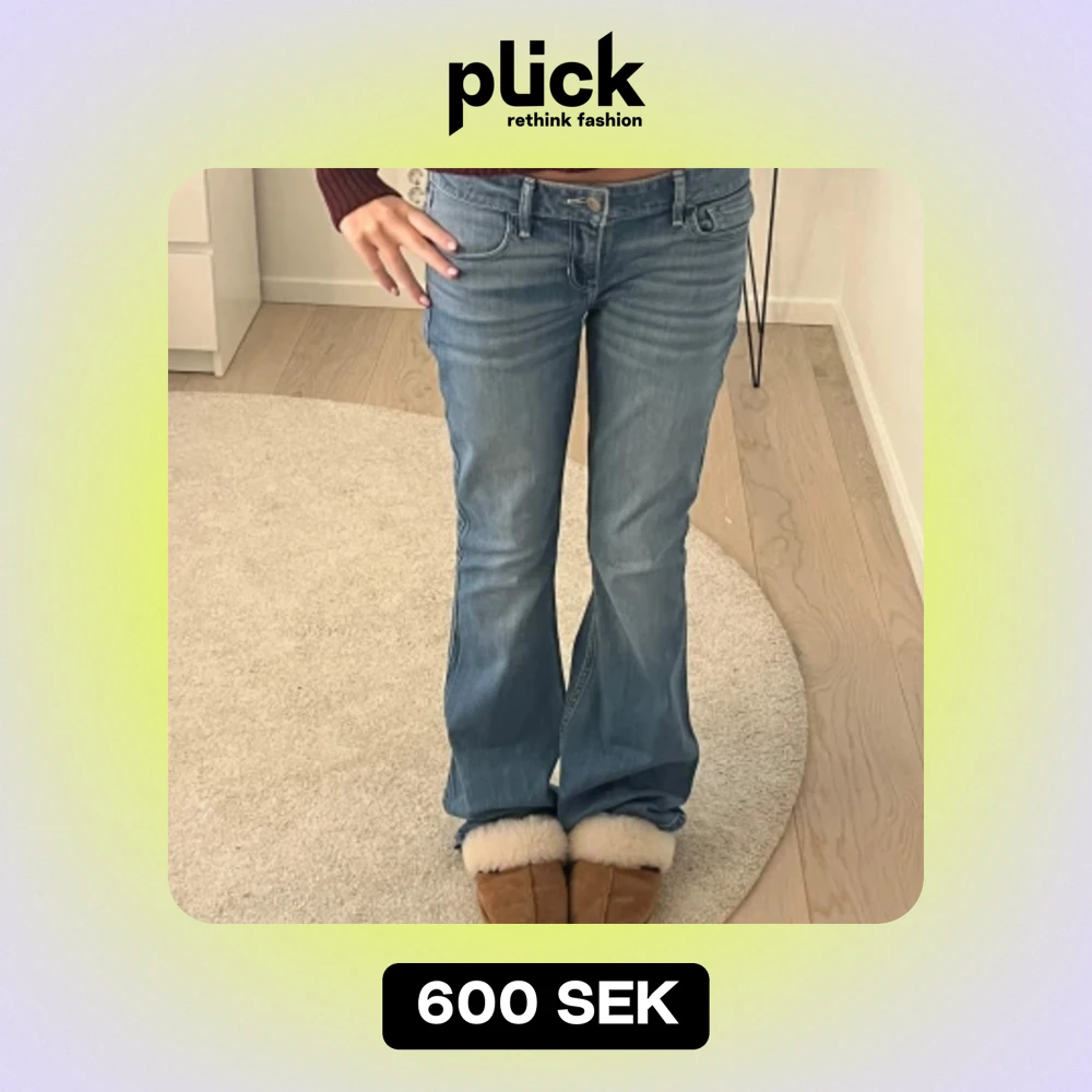Sjukt snygga lågmidjade bootcut jeans från Hollister!! Älskar köp!!Midjemått: ca 36cm rakt över (stretchiga), innerbenslängd: ca 78cm💗💗