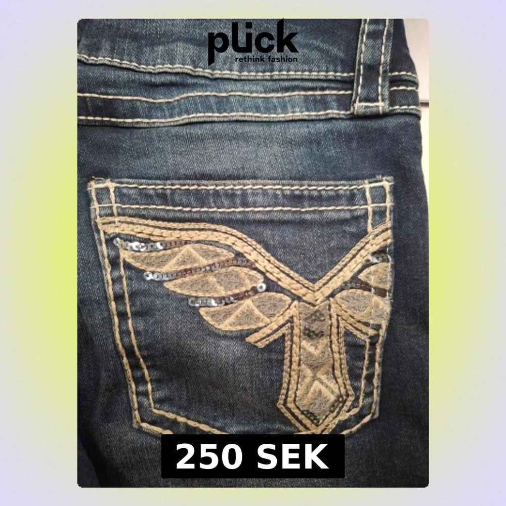 Snygga lågmidjade jeans från Gina med broderat mönster på bakfickorna och en tvättad look. Säljer eftersom dom inte kommer till användning🥰 Hör gjärna av er vid funderingar och frågor! Priset kan gå att diskuteras!🥰💓