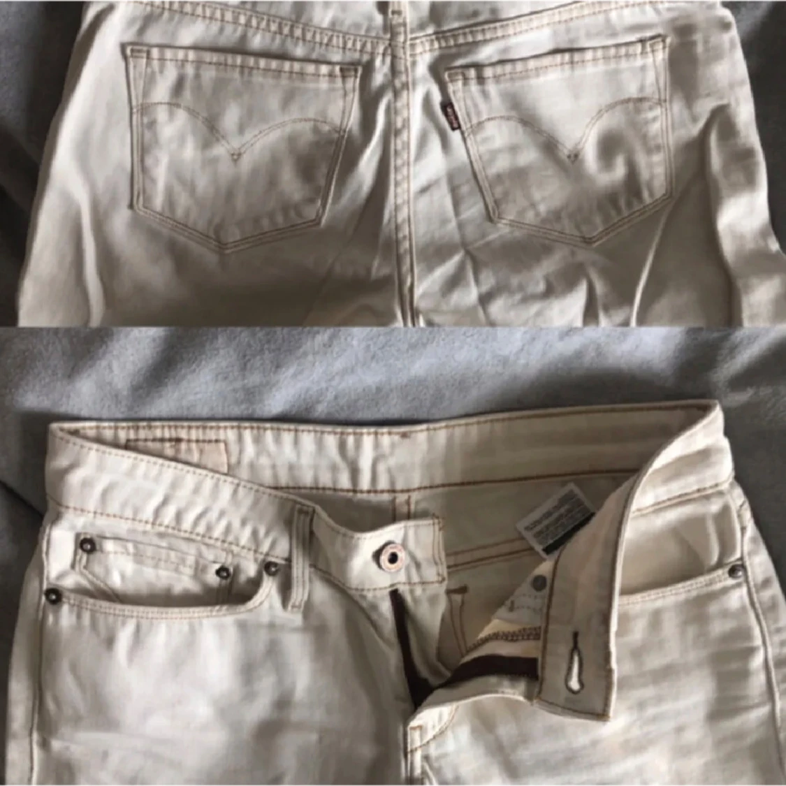 Säljer ett par krämvita lågmidjade bootcut jeans från Levi’s i strl. 24. Defekter på sista bilden där det är lite slitage vid hälarna samt en del fläckar. | FRI FRAKT I 7 DAGAR F.O.M. 10 AUG🌟