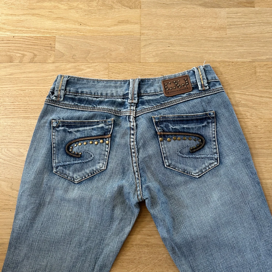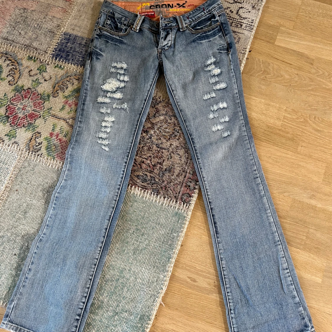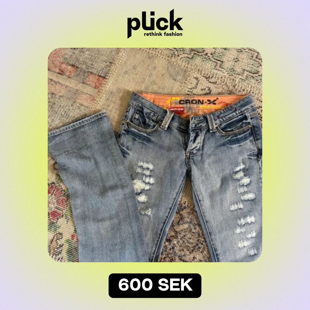Super snygga lågmidjade jeans med slitningar🤩 jättebra skick och inga defekter! Midjemått rakt över 37cm Innerbenslängd 85cm