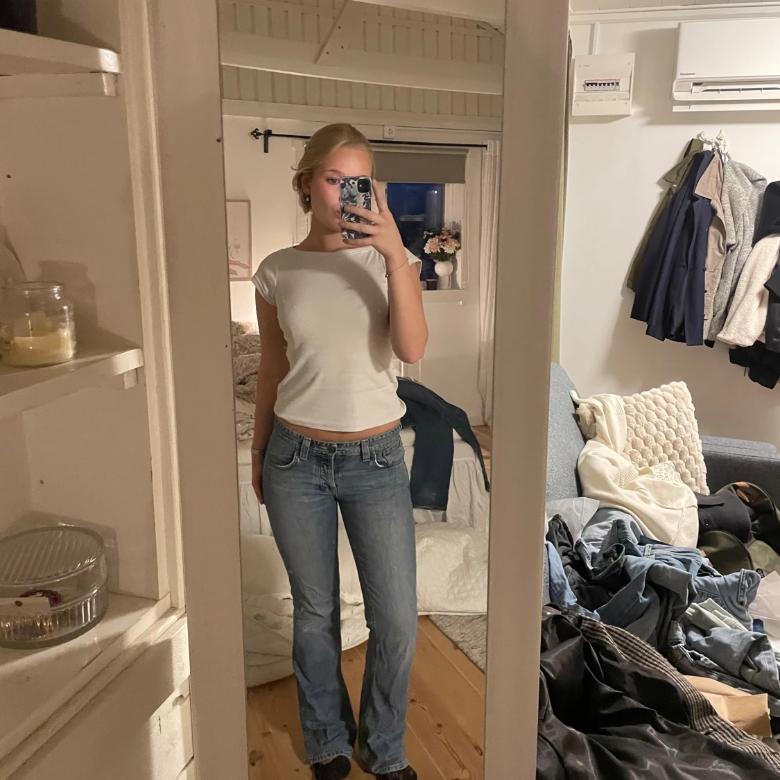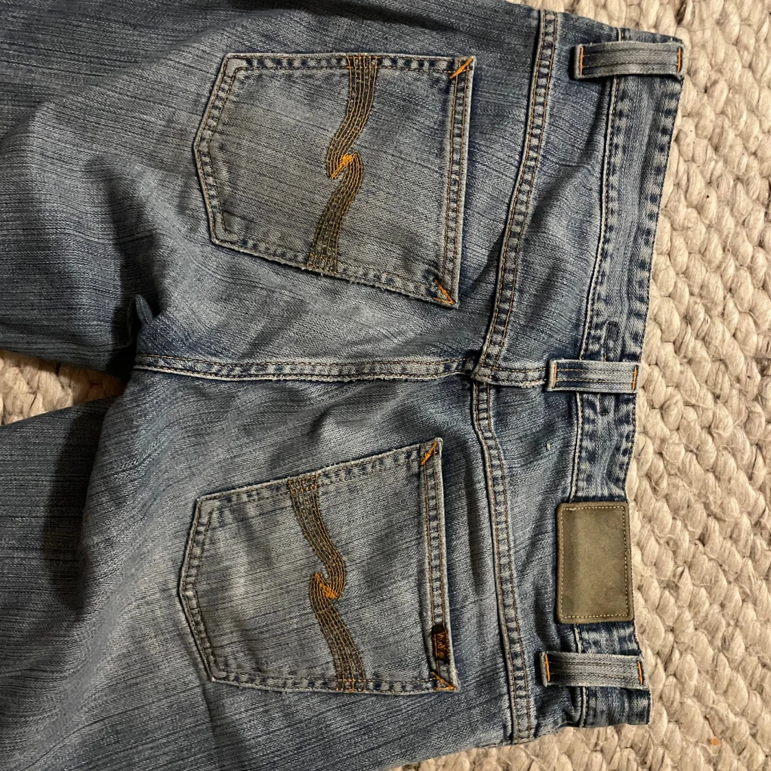 Skitsnygga vintage nudie jeans som är lådmidjade. Skulle säga storlek 36/38 beroende på hur man vill att de ska sitta, jag är storlek 38 för referens och är 172 cm lång. Kan förhandla priset.
