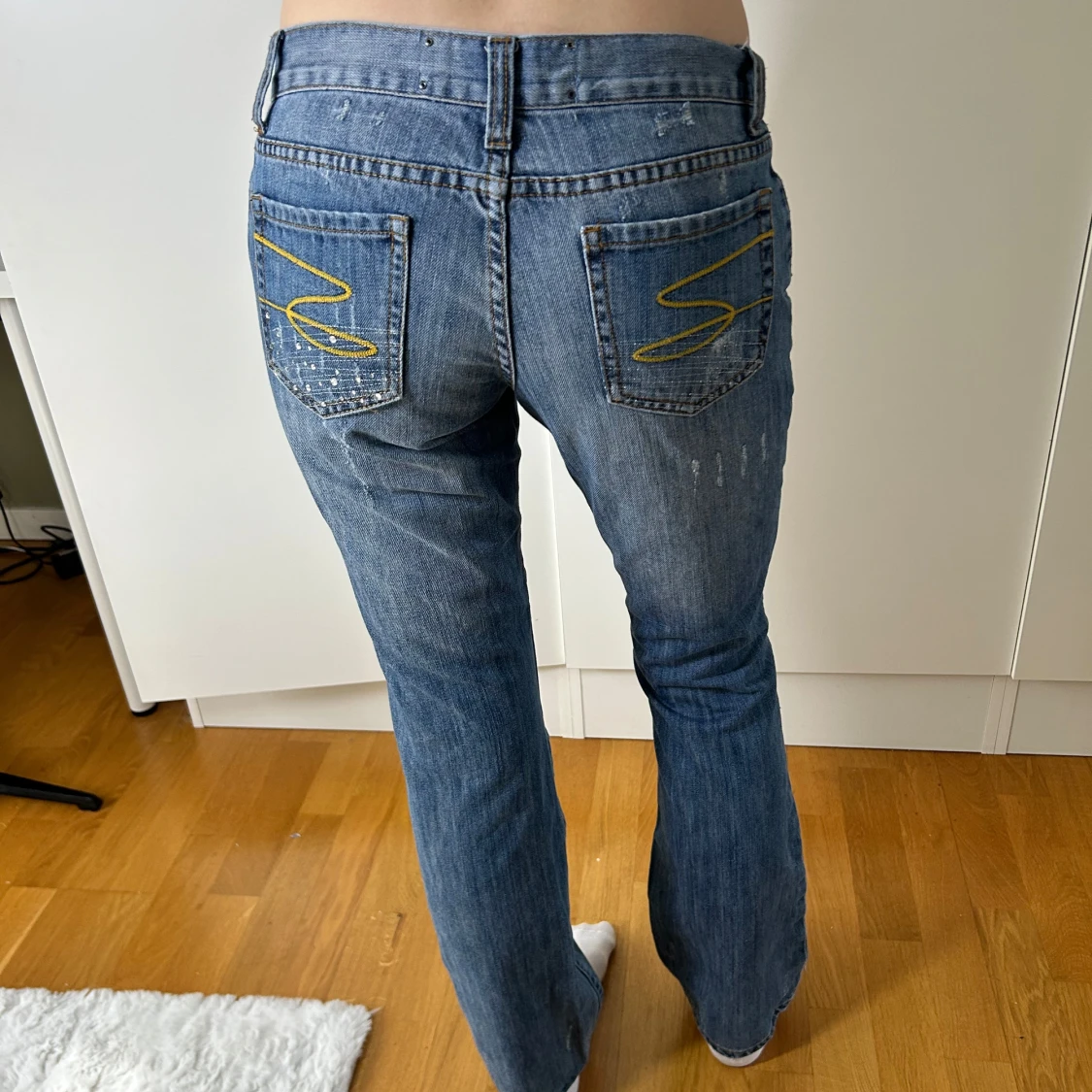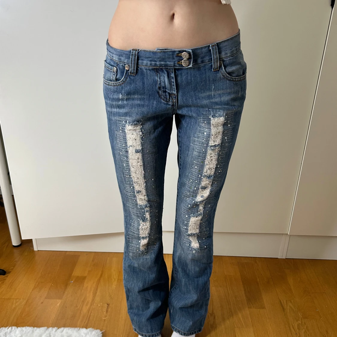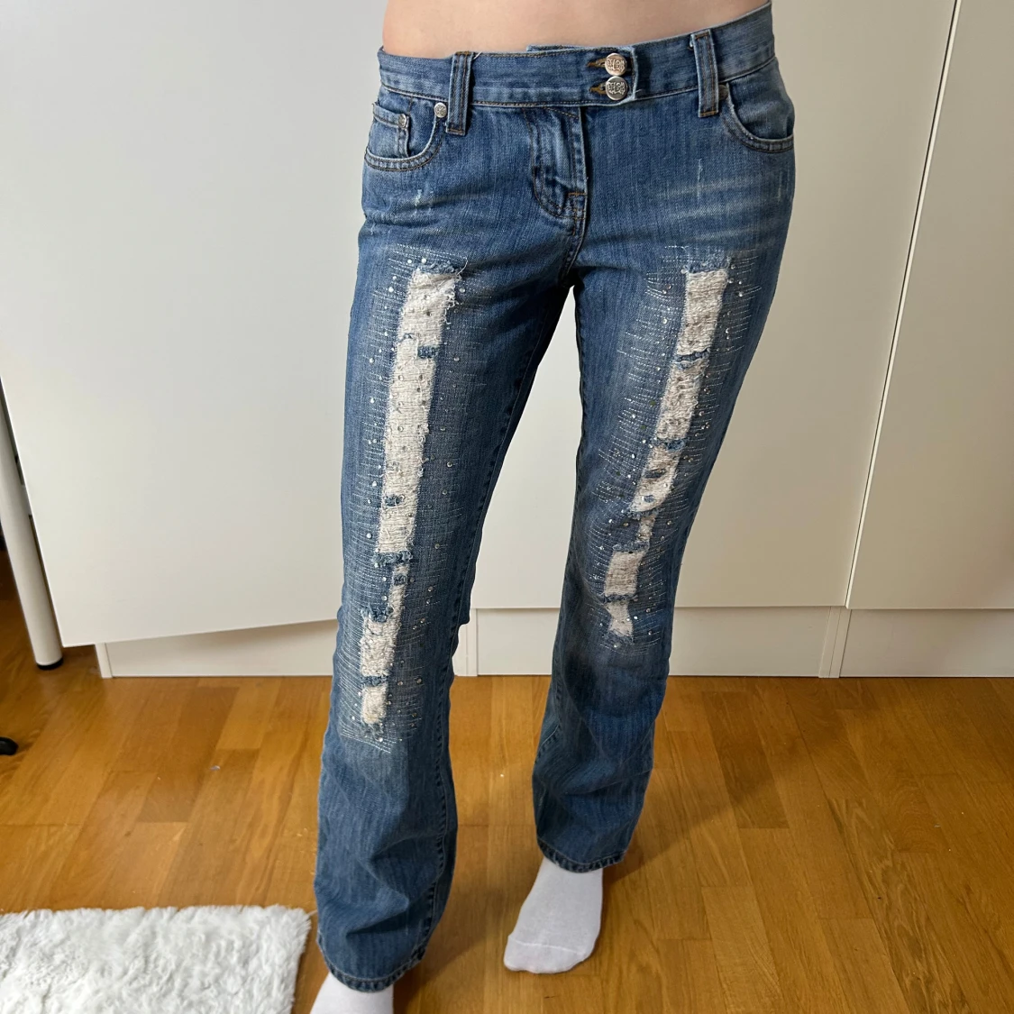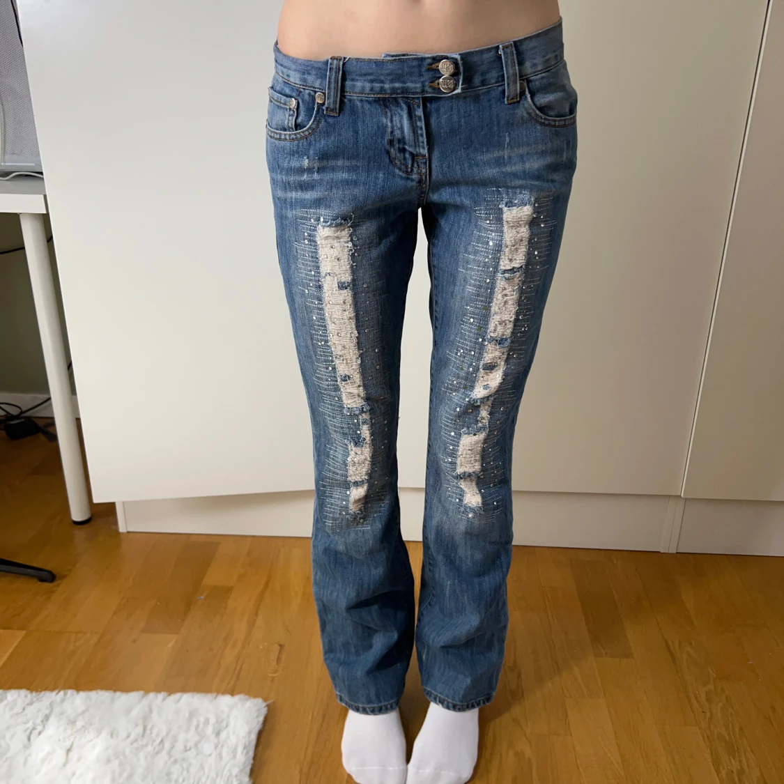 Lågmidjade bootcut jeans med slitningar vintage y2k 2000s