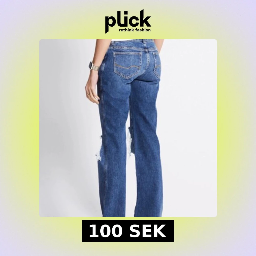 Snygga blå jeans med slitningar på knäna. De har en klassisk femficksdesign och en normal passform.