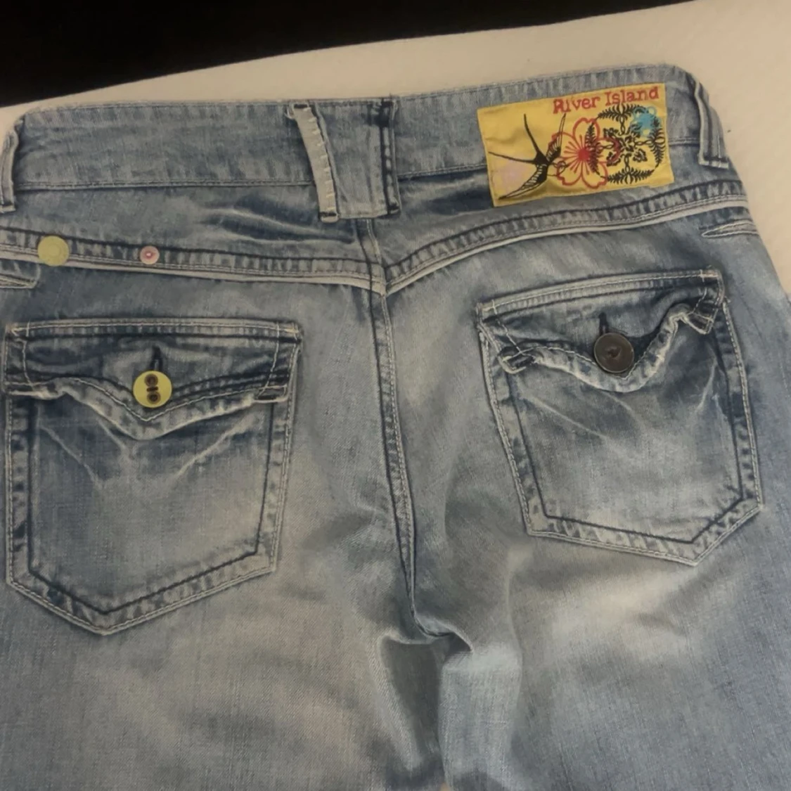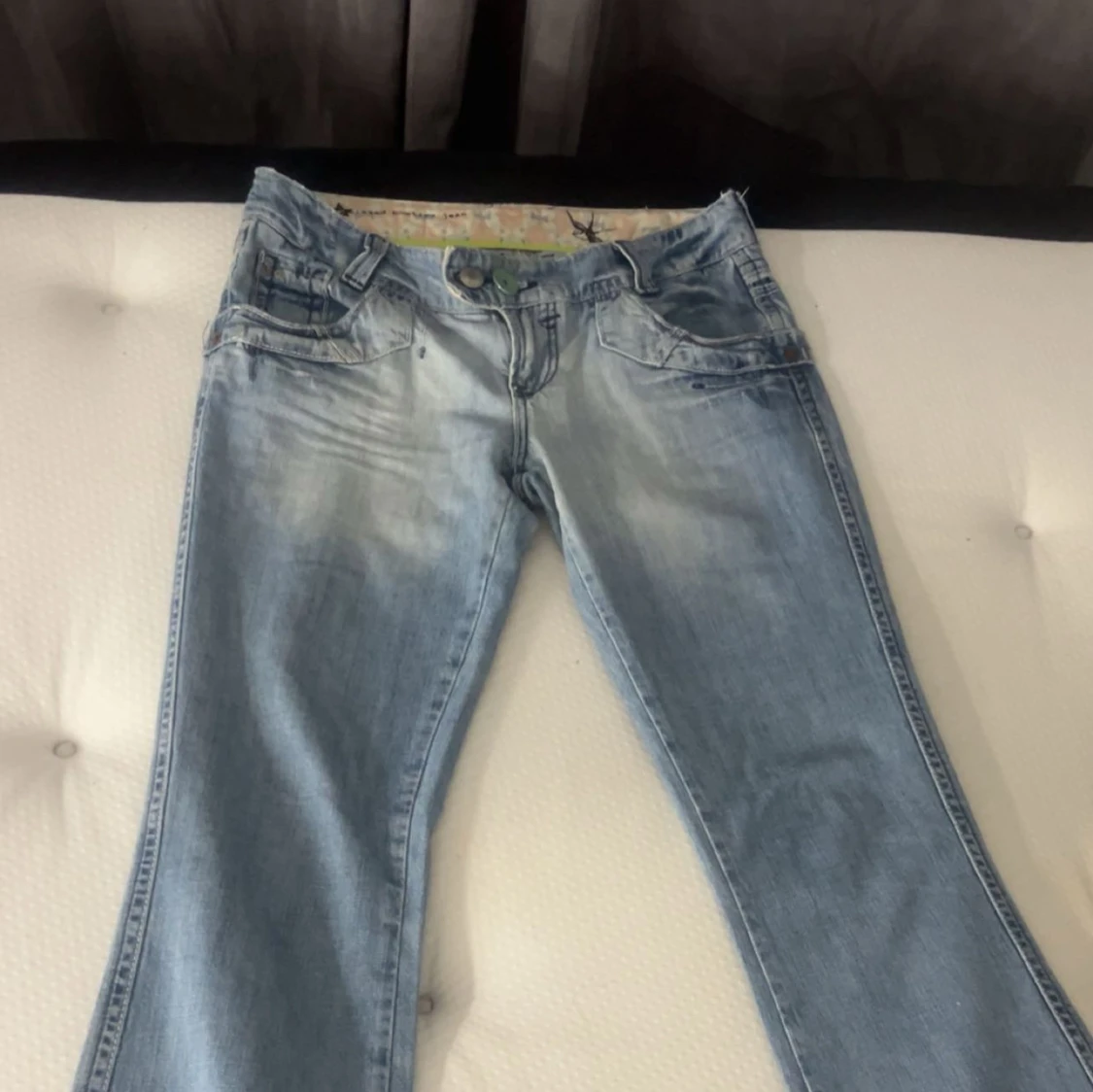 Unika Lågmidjade bootcut jeans med fina detaljer 💕 Står ej storlek på jeansen, mått finns på bilderna 💕 Inga defekter Köptes på Vinted men passade ej, säljer vidare 💕