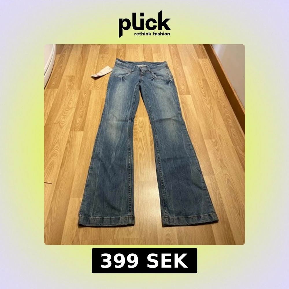 (18) de perfekta lågmidjade jeans i storlek 26/32 helt nya med lappar kvar, med stretchigt material. Midjemått rakt över: 35 cm, innerbenslängd: 85 cm 💞