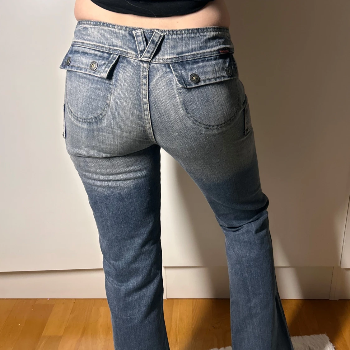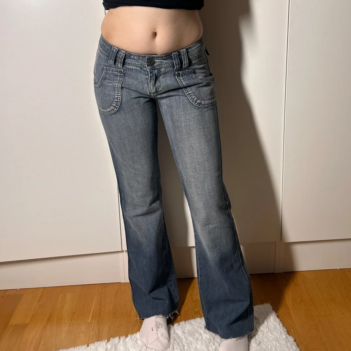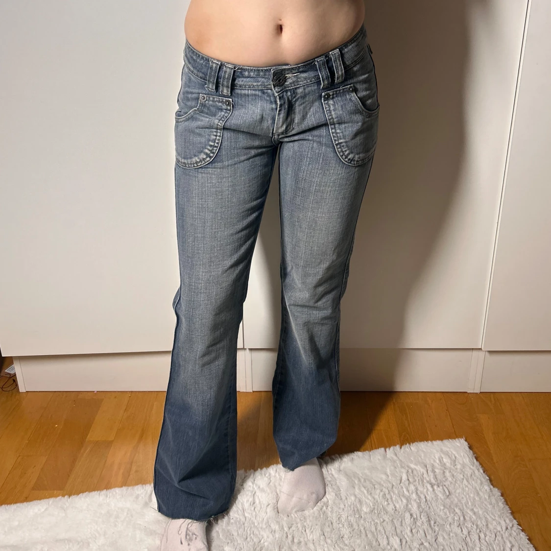 Lågmidjade vintage jeans. Storlek w27 l34. Dock tror jag att de har blivit avklippta då de är mycket kortare. Dock Inget jag gjort själv och inget som ser konstigt ut Innerbenslängd: 77-78 midjemått:36-37. Köp sker via köp nu, jag postar inom 24h. Kvar tills markerad såld
