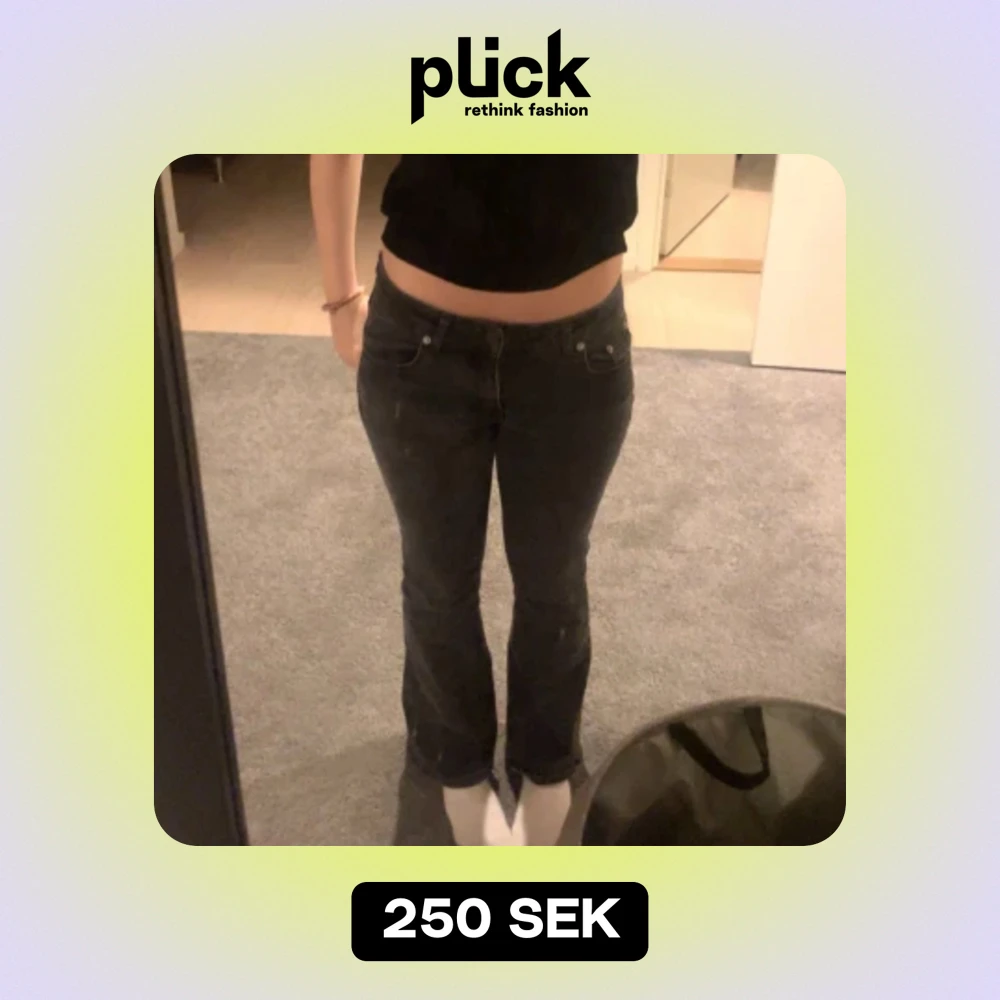 Lågmidjade bootcut jeans i urtvättade svart/grå,jätte bra skick och dom sitter bra på mig 💕💕