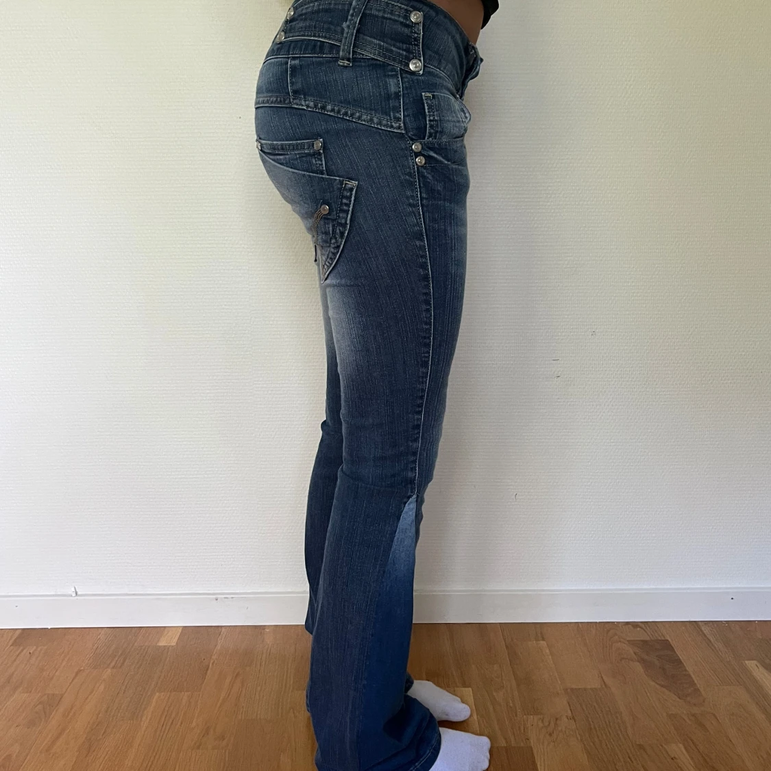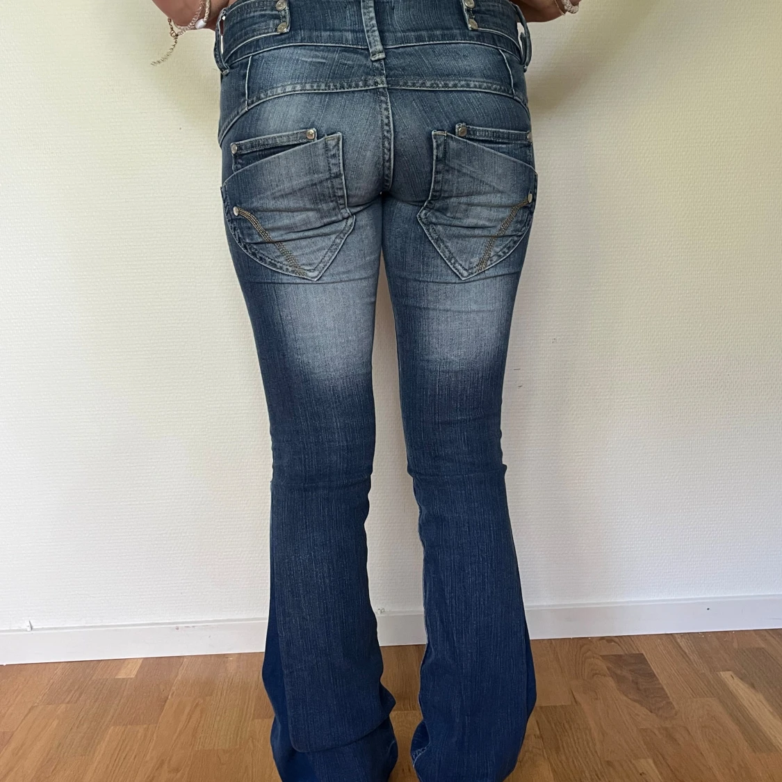 Super snygga lågmidjade jeans som ja sytt om till bootcut i storlek 25, midjemått 70 o innerbenslängden 76,modellen är 160💓 följ jeans4you