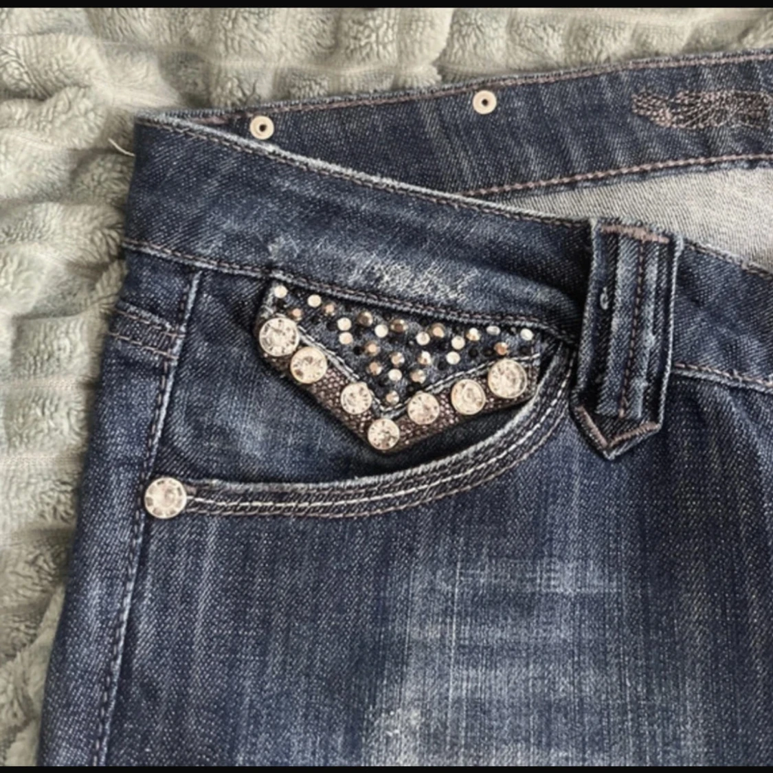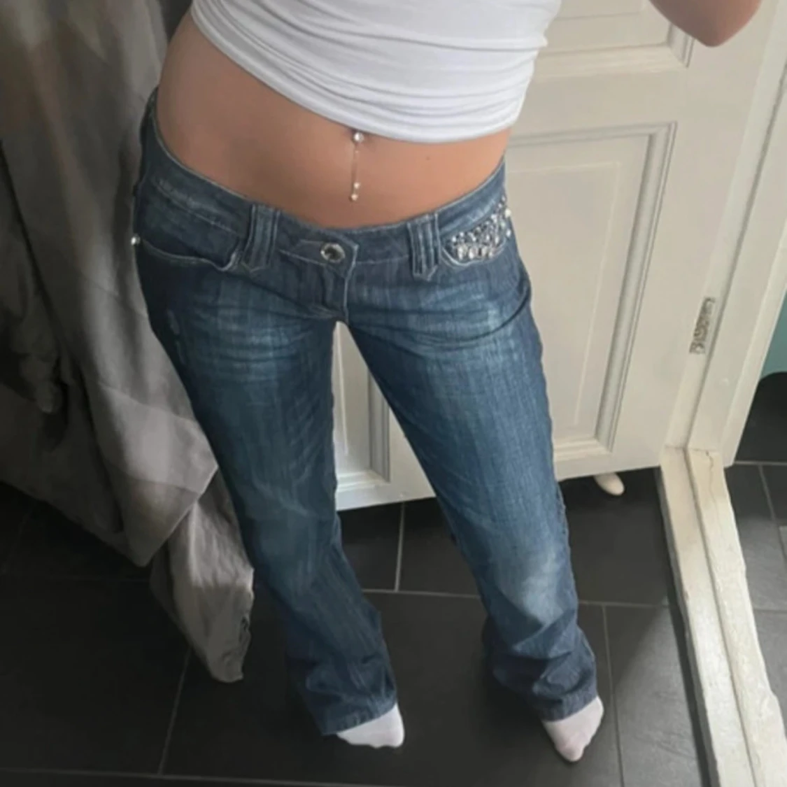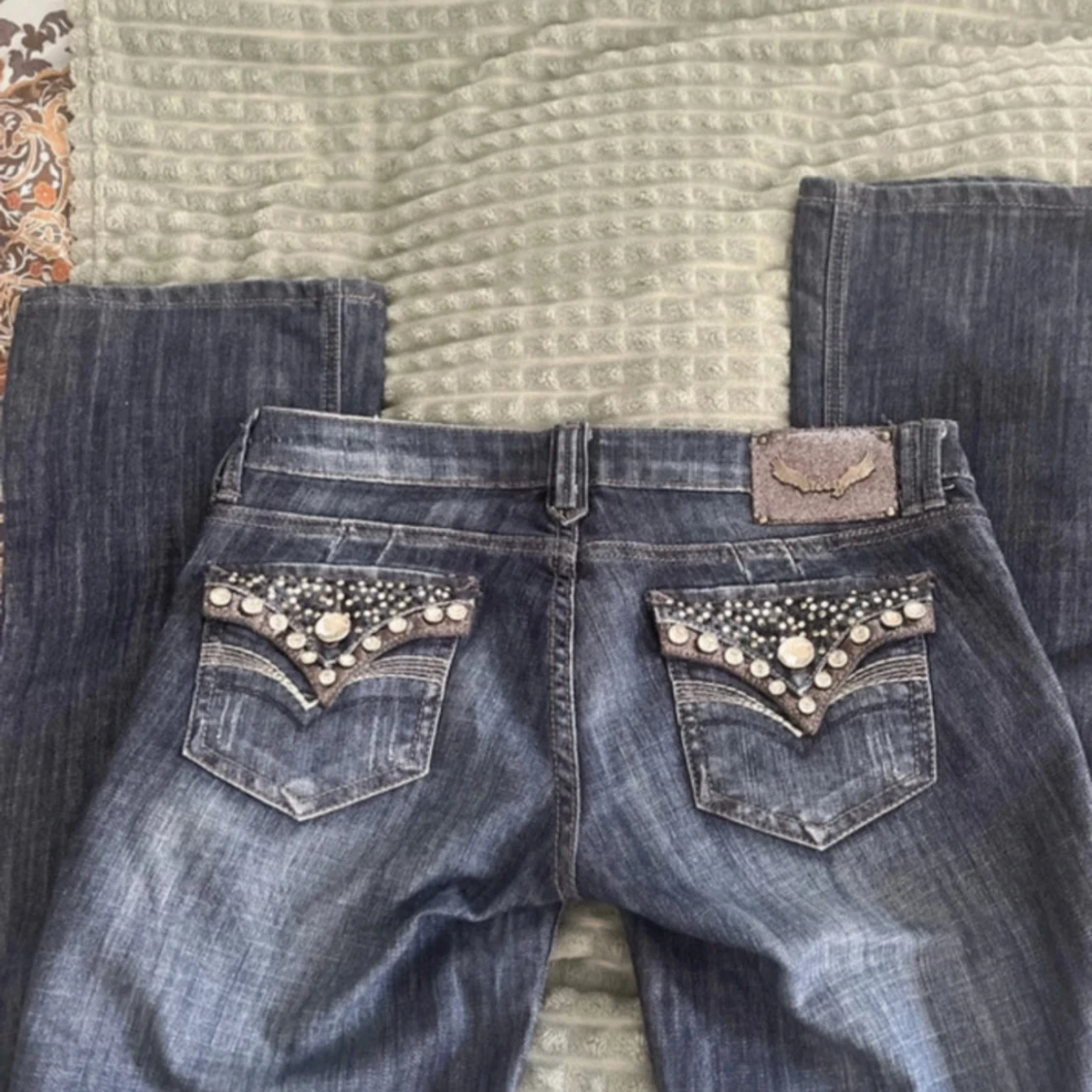 Ett par bootcut jeans med låg midja och coola fickor! Säljer eftersom att de inte kommer till användning💕Midjemått rakt över:38 cm Innerbenslängd: 82 cm Grenhöjd: 17 cm