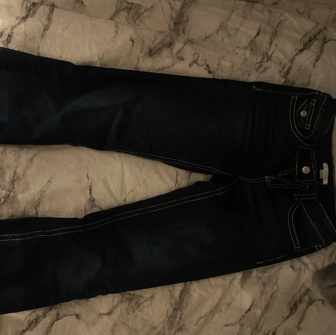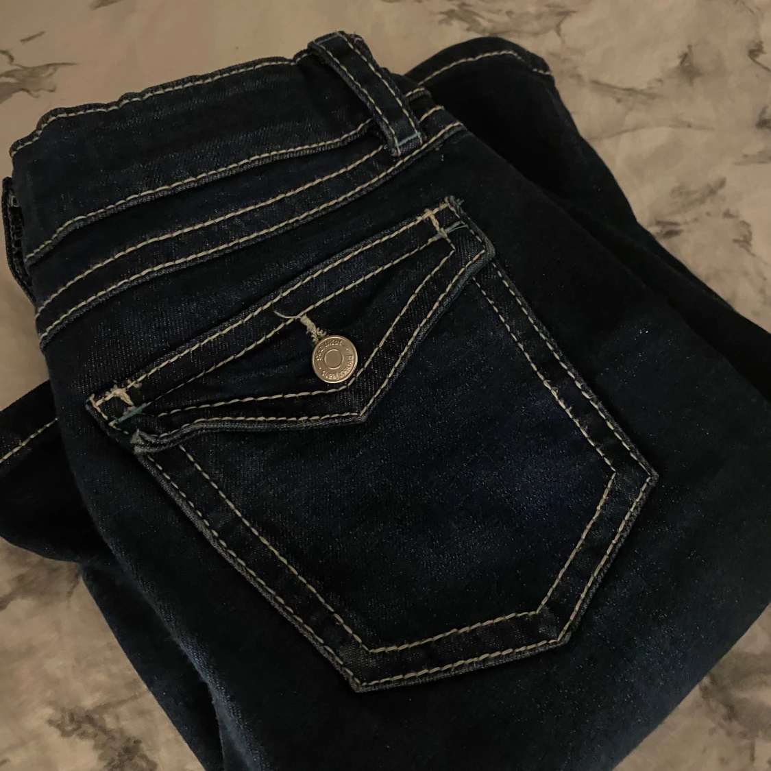 Mörkblåa bootcut jeans från Gina Tricot. Dom är i storlek 158 och är lite ljusare ner på knäna 🤍dom är väldigt sköna och sitter bra! Har använt dom fåtal gånger så dom är i mycket bra skick. Jeansen är slutsålda på hemsidan så jag säljer dom här. Skriv privat vid fler bilder och priset går absolut att diskuteras 💋