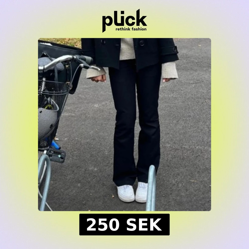 Snygga svarta kostymbyxor från Bik Bok i bootcut-modell som inte längre passar mig💗Byxorna har lågmidja och låtsas fickor bak. De har en liten vit fläck längst ned på ena benet. De är välanvända men i bra skick💗