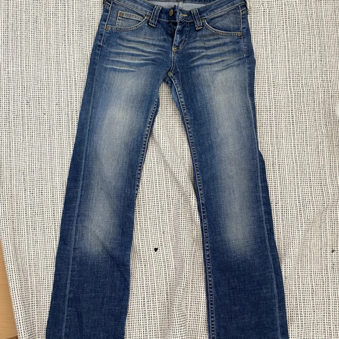 Lågmidjade bootcut jeans💕 Midjemått: 37 cm, Innerben:85 cm. Mina absoluta favoritjeans men de har tyvärr blivit lite små för mig😩Ett pyttelitet skav/hål har börjat bildas på insida lår, sista bilden, men det syns inget och är nog lätt att laga!